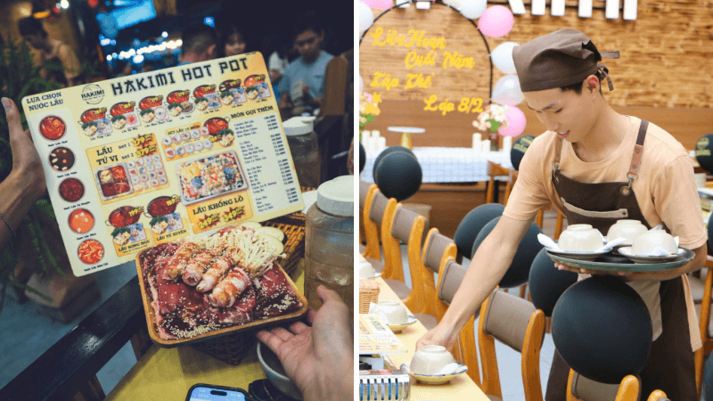 Các bạn nhân viên phục vụ tại Hakimi gây ấn tượng bằng sự nhanh nhẹn cùng nụ cười tươi tắn luôn nở trên môi. Mọi yêu cầu từ việc thêm nước dùng cho đến lấy thêm gia vị chấm đều được thực hiện một cách chớp nhoáng và đầy chu đáo. Sự nhiệt tình này mang lại cho bạn cảm giác mình luôn được chào đón và trân trọng như những người khách quý ghé chơi nhà.