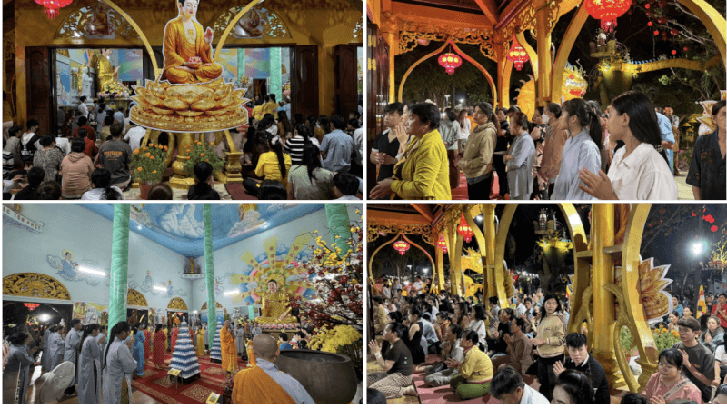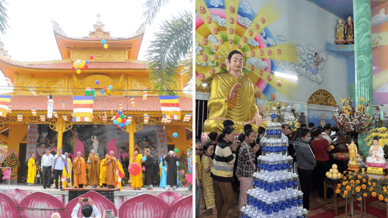 Bên trong chánh điện, sự bài trí tôn nghiêm của các pho tượng Phật mang đến cảm giác an lạc tuyệt đối cho bất kỳ ai ghé thăm. Ánh sáng vàng dịu nhẹ tỏa ra từ các góc thờ tự làm tăng thêm vẻ lung linh và huyền bí cho toàn bộ không gian. Sự kết hợp giữa nghệ thuật điêu khắc tinh xảo và phong cách sắp đặt truyền thống tạo nên một không gian tâm linh đầy sức sống, vừa uy nghi vừa gần gũi.