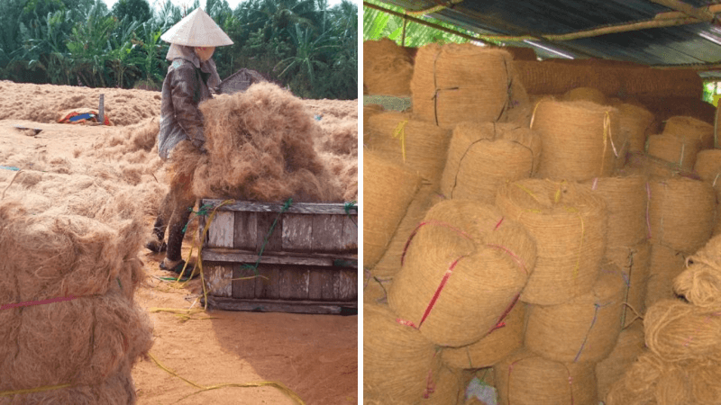 Để làm ra những sản phẩm hoàn thiện, người thợ An Thạnh phải thực hiện một quy trình sản xuất tỉ mỉ và công phu, bắt đầu từ khâu thu mua dừa tươi. Sau đó, vỏ dừa được tách ra để lấy phần xơ, rồi trải qua nhiều công đoạn chế biến, chà rửa, và cuối cùng là phơi khô dưới ánh nắng mặt trời. Sự tận tâm trong từng công đoạn đã tạo nên những sợi chỉ xơ dừa chất lượng, là nguyên liệu cho các sản phẩm thủ công độc đáo.