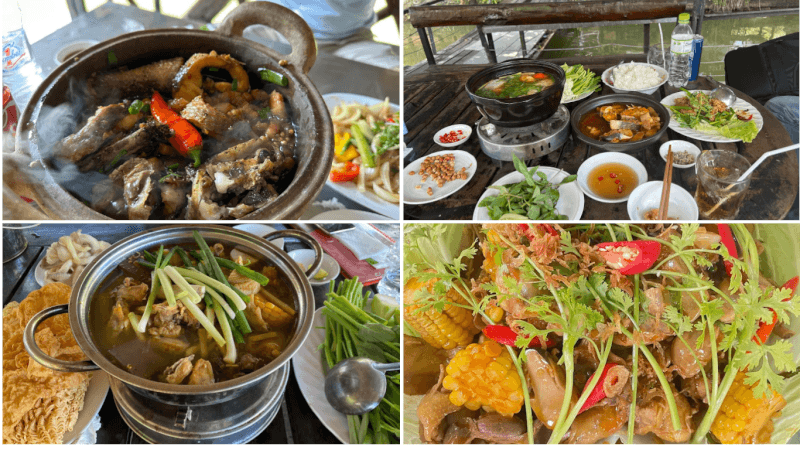 Bên cạnh món lẩu, thực đơn của quán còn rất nhiều lựa chọn hấp dẫn khác như gà nòi hầm sả hay gà nướng muối ớt cũng rất đáng để thử qua. Bạn hãy lưu ý về giờ đóng mở cửa để sắp xếp lịch trình tham quan Vĩnh Long sao cho hợp lý và thuận tiện nhất. Đừng quên mang theo máy ảnh vì không gian nhà sàn gỗ lên hình rất xinh, hứa hẹn cho bạn những bức ảnh kỷ niệm đậm chất miền Tây đấy.