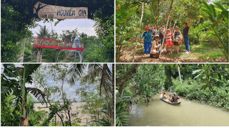 Thay vì tiếng còi xe inh ỏi hay những bức tường bê tông ngột ngạt, mình chọn lắng nghe nhịp thở của dòng sông Tiền tại xã Vĩnh Thành, tỉnh Vĩnh Long. Điểm dừng chân hôm nay của chúng ta mang tên Nguyễn Gia Farmstay, một khoảng trời xanh mướt đủ sức xoa dịu mọi căng thẳng trong tâm trí bạn. Mình tin rằng sự mộc mạc nơi đây sẽ giúp bạn tìm thấy cảm giác tự do đúng nghĩa ngay từ những bước chân đầu tiên vào cổng trang trại.