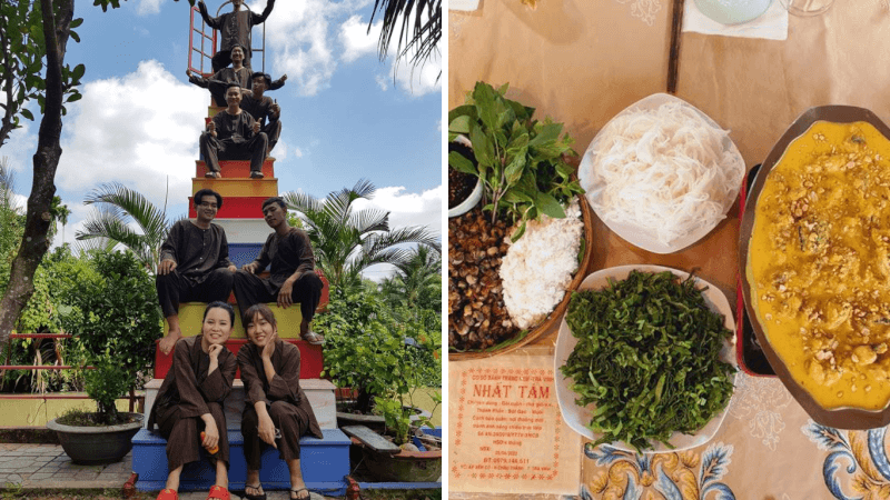 Bạn đừng quên nếm thử món cá lóc nướng trui hay canh chua bông súng đặc sản của vùng đất Vĩnh Thành này. Hương vị đậm đà hòa quyện cùng mùi thơm từ bếp củi sẽ khiến bạn nhớ mãi không quên. Ngồi ăn cùng bạn bè giữa không gian lộng gió, mọi câu chuyện đều trở nên rôm rả và ấm áp hơn.