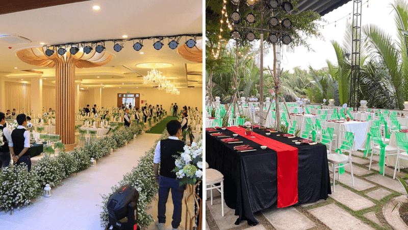 Chỉ cần bước vào cổng, bạn sẽ ngay lập tức bị thu hút bởi sự đầu tư tỉ mỉ trong từng chi tiết thiết kế. Khách hàng có thể lựa chọn dùng bữa tại nhiều không gian khác nhau: từ các phòng riêng ấm cúng phù hợp cho nhóm nhỏ 5 đến 20 người, hay khu vực sảnh tiệc lớn tiện nghi có thể đón tiếp từ 50 đến 200 khách. Nhà hàng còn trang bị một khu vực ngoài trời cực kỳ ấn tượng, có thể đón đến 600 người, rất lý tưởng để tổ chức các sự kiện lớn.