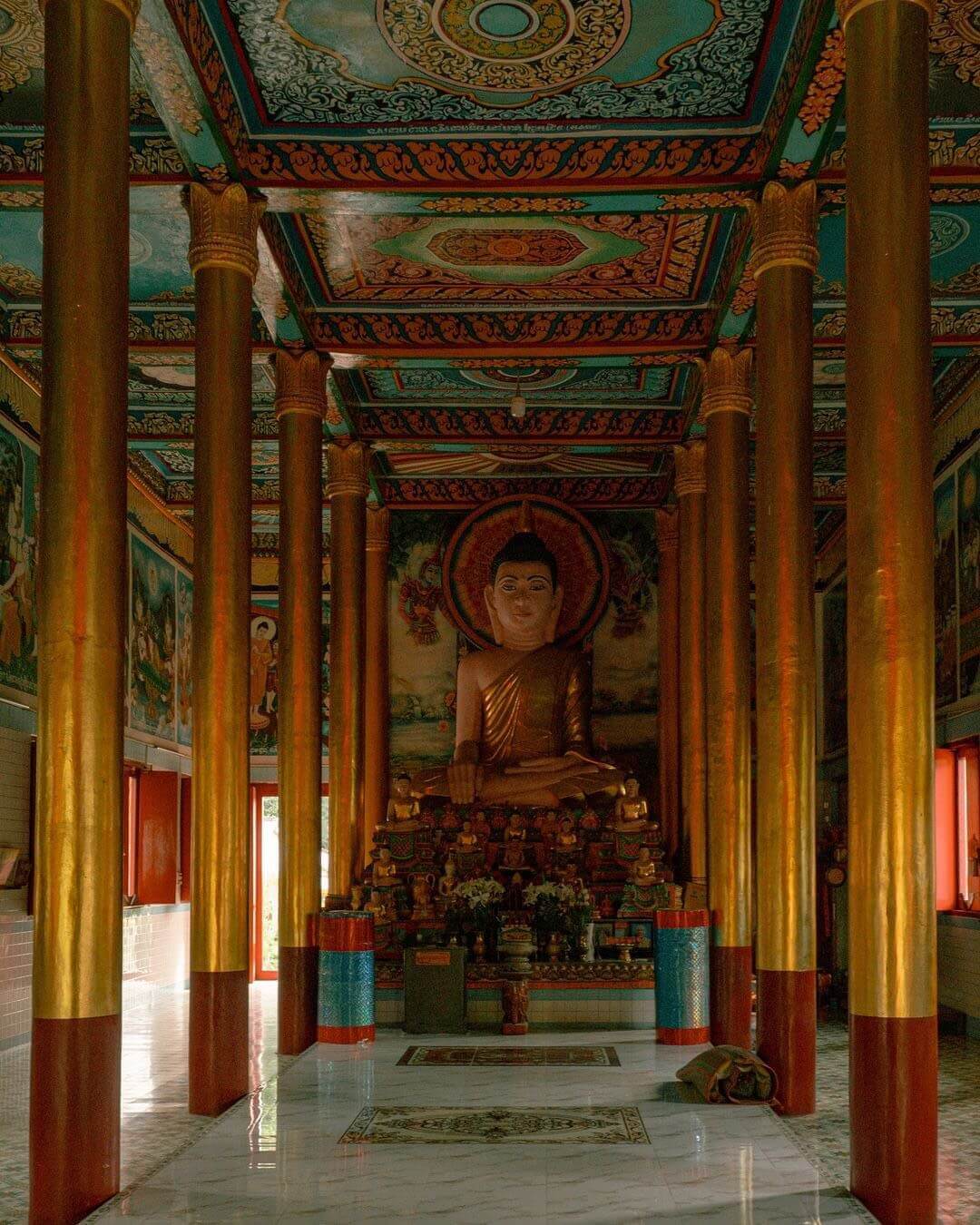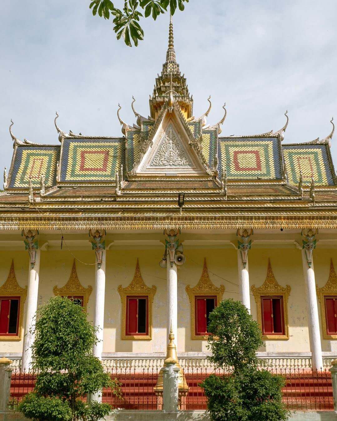 Chánh điện của chùa được xây dựng trên nền đất cao với nhiều bậc thang dẫn lên,được trang trí bằng nhiều hoa văn và họa tiết. Mái của chánh điện được tạo thành từ nhiều lớp chồng lên nhau,trên đỉnh là một tòa tháp uy nghiêm. Bên trong chánh điện có hai hàng cột cao,ở giữa là bàn thờ Phật Thích Ca Mâu Ni.