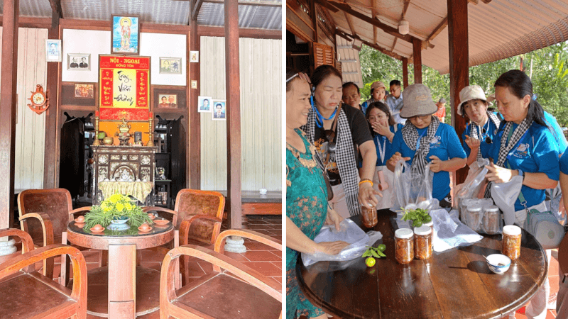 Ở Nhị Hòa, bạn sẽ không tìm thấy những khu resort tách biệt mà là những nếp nhà nối liền nhau bằng tình làng nghĩa xóm. Mỗi hộ dân tại đây đóng vai trò như một mắt xích quan trọng, cùng nhau tạo nên một hành trình trải nghiệm xuyên suốt cho tụi mình. Từ bếp lửa bập bùng nhà Út Phong đến vườn dừa rợp bóng nhà Phương Thùy, tất cả đều mở rộng cửa đón đợi bạn bằng sự chân tình và nồng hậu nhất.