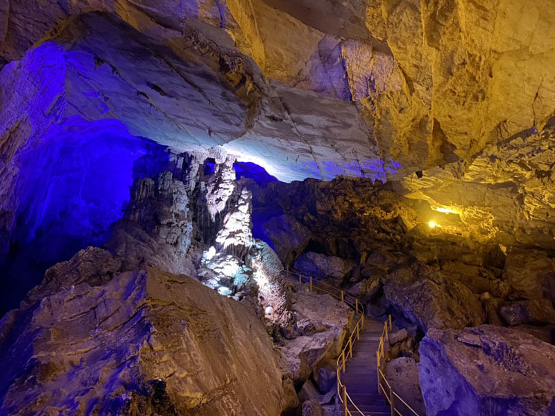 Puong Cave 是一个长约 300m 的巨型洞穴,Nang River 流经 Lung Nham 石灰岩山,形成了遗产区最壮丽的景观。乘船进入洞内,高耸的石拱门、闪闪发光的钟乳石系统和数以万计的蝙蝠的家园将让您惊叹不已。光线穿过两扇洞门,反射到长满青苔的碧绿水中,带来神奇的视觉体验,让游客在探索之旅中感受到创造的神奇力量。