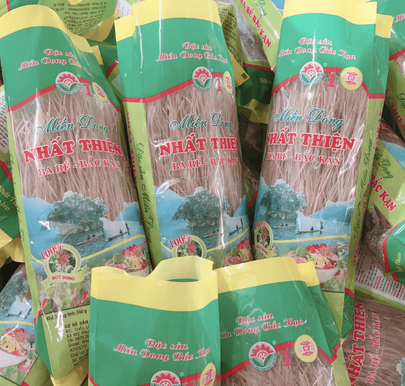 Nhat Thien Dong 粉丝(OCOP 典型产品):这里是当地著名品牌的冬粉,呈自然灰色。粉丝纤维,嚼劲突出,再煮时不散。粉条采用100%纯葛粉制成,是游客来巴比公社时选择批量购买的实用且有意义的礼物。