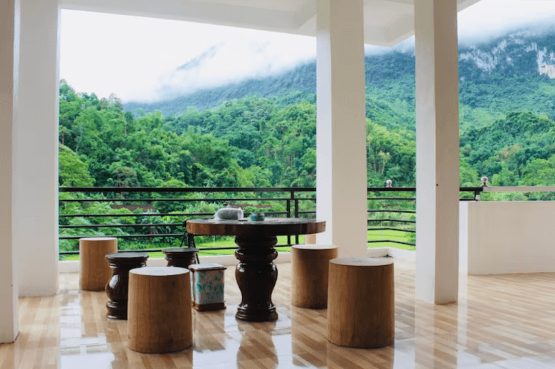 巴贝公社最精致的体验之一就是在泰族古老的高脚屋里享用传统美食。探索洞穴之旅结束后,游客们将围坐在一盘舒适的米饭周围,坐在木屋的门廊上,与房主一起品尝一杯热情的叶酵母酒。村里静谧的空间里,在新米的香味和湖水潺潺的波涛声中,所有的烦恼似乎都消失了。这不仅仅是简单的吃喝,更是一次与绿色遗产中心的原住民古老文化价值观相联系的旅程。