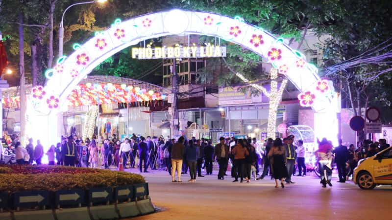 Ky Lua步行街位于Ky Lua Ward的繁华中心,是最独特、最具活力的文化娱乐空间,汇聚了朗人的生活精髓。每个周末,古老的 Ky Lua 市场周围的街道都会呈现出熙熙攘攘的景象,舞台上表演着《Then》歌曲,甜美的 Tinh 乐器与充满泰族和农族特征的优雅的狮子和猫舞蹈混合在一起。