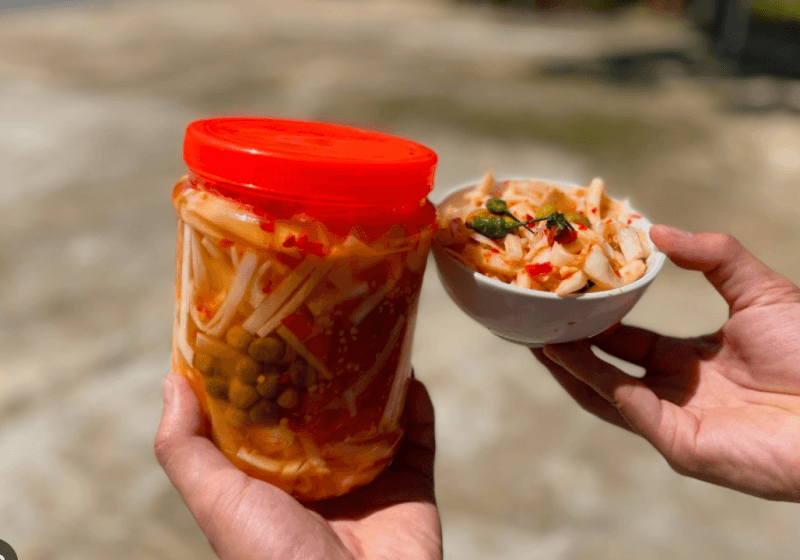 谅山辣椒笋:由松脆的野生竹笋与香蜜矛和辛辣的辣椒制成,谅山辣椒笋具有明显的边疆风味。这些产品由 Tam Thanh Ward 的人们包装在精致的玻璃罐或真空袋中,并带有四星级 OCOP 可追溯二维码,让游客对质量完全放心。酸辣的味道与林叶的香气混合在一起,创造出一种美妙的调味品,一份简单的礼物,却蕴含着郎山森林的全部风味。