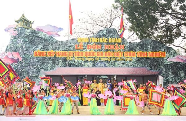 Vinh Nghiem 塔节每年都会在 Vinh Nghiem 塔举行(也称为 La Pagoda 节)。此前,该节日在每年农历11月1日举行,当地人们仍习惯称其为“拉塔仪式”——觉悟五五陈仁堂化身日。
