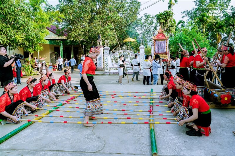 真建庙节——保护民族文化认同的地方  钦建庙节是义安省泰国人民最盛大的传统节日之一,每年农历二月十五在Que Phong区Chau Kim公社举行。文化体育旅游部2016年6月13日第2067/QD-BVHTTDL号决定将真善寺祭典列入国家级非物质文化遗产名录。 这个节日不仅是当地人祈求新的一年风调雨顺、五谷丰登的场所,也是保存和弘扬民族文化认同的机会。 Chin Gian 寺是国家历史古迹,建于 18 世纪,位于 Que Phong 区 Chau Kim 公社 Khoang 村的 Pu Cho Nhang 山顶。寺庙供奉上帝(供奉婆婆),供奉天女(供奉囊西达),供奉为建设村庄和芒族做出贡献的人们(供奉陶罗ỻ)。镇江庙祭是为了纪念神灵的功德,表达人们对开村之人的感激之情。 每年农历二月十五日起,镇江庙会举行,一般持续三天,文化活动丰富,仪式独特:沐浴水牛仪式、捐水仪式、祭神仪式、花轿游行、... 真建庙会最有特色的就是祭水牛仪式:按照习俗,每个村庄都要献上一头水牛。祭水牛仪式所用的水牛是从Muong Ton(这里九个村庄中的主要村庄)带来的水牛。仪式上,仪式主持人(女士)穿着礼服(衣服和橡皮)在普奎山脚下的水码头,在所有人的见证下进行沐浴水牛仪式。沐浴后,祭祀的水牛会在庄严的游行中被带到寺庙场地。和尚身着大衣,绕着紧紧拴在木桩上的水牛走了三圈。他一边走,一边用泰族语言念诵“Xen”,内容是祈求“九芒十村”平安。其次是在芒族社会有地位的人。 除了庄严的仪式外,节日的参与者还可以沉浸在欢乐、充满活力的氛围中,享受许多吸引人的民间仪式和游戏,如:泰国人民祈雨的习俗、唱担、洲、竹竿舞、打锣、跳汽油汗…… 真善寺节是泰义安人独特的文化之美。这个节日不仅是当地人祈求新的一年风调雨顺、五谷丰登的场所,也是保存和弘扬民族文化认同的机会。 如今,真建庙节已成为吸引各地游客的旅游目的地。参加节日也是体验泰国人民独特文化特色的机会。