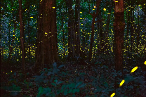 Cuc Phuong森林的“萤火虫季节”是一个非常热闹的时期,夜晚就像百万颗星星在大千里闪烁,在游客面前构成了一幅美丽的图画。