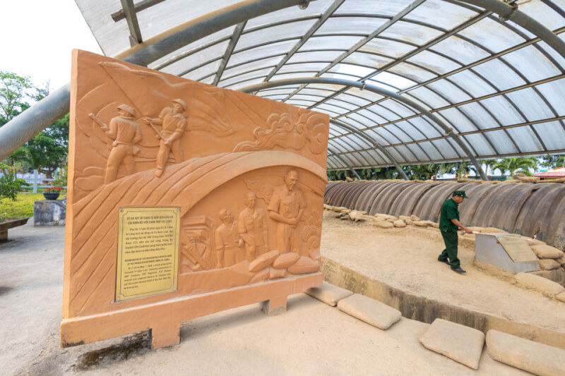 德卡斯特里将军的指挥碉堡是位于奠边府据点群城市中心的特殊历史遗迹。奠边府。这里是1954年克里斯蒂安·德卡斯特里将军的工作场所,建筑坚固,结构长20m,宽8m,是法国战败的象征。这里因1954年5月7日“决战——决胜”旗帜飘扬事件而闻名。 下午 5:30 1954年5月7日,第312师连长Ta Quoc Luat在地下室的办公桌上活捉了德卡斯特里将军,标志着奠边府战役的彻底胜利。 目前,该隧道仍保存完好,是23个国家特殊古迹之一,吸引了大量游客前来参观、了解历史。 卡斯特里隧道不仅是军事遗迹,也是越南人民英勇战斗意志的活生生见证。 来源:网络搜集