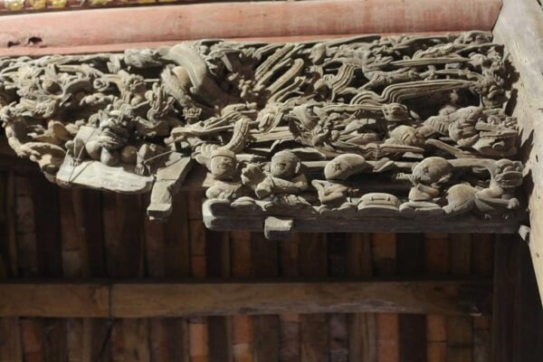 Hoang Xa Communal House still retains the altar, the large throne altar, the altar, the palanquin and the precious bowl, the ordination (from the Quang Trung to Khai Dinh period) and parallel parallel panels; The carvings reached the highest peak of art during the Le Trung Hung period. Ung Hoa district possesses a rich system of relics and intangible cultural heritage, typical of the Red River civilization and the Northern Delta region. Among them, Hoang Xa communal house - a national historical and cultural relic - attracts a large number of tourists from near and far to visit. Hoang Xa communal house (Van Dinh town, Ung Hoa district) was built around the end of the 16th century, in the "Nhat" style, meaning there is only one rectangular building with three compartments and two large wings, worshiping in a horizontal way. The altar is worshiped on the mezzanine in the space between the two main columns and the two military columns at the back of the middle space, worshiping the village tutelary god Quy Minh - one of the Three Saints of Tan. Expression of fertility, happiness, prosperity. The communal house's name is taken from the name of Hoang Xa village (formerly in Lien Bat commune, now in Van Dinh town). In the 17th century, Hoang Xa communal house was repaired and the Central Palace and the Harem Palace were built in the architectural style of the letter "Cong". Hoang Xa communal house looks towards the West - Northwest. The ritual gate is designed in the style of a pillar. The head of the pillar is shaped like a lantern, the top is covered with two unicorns flanking each other. Nghi Mon has four pillars. The middle door is two large square pillars with two unicorns flanking each other at the top. Dai Bai (main communal house) is built on a rectangular foundation of 200m2, including 3 large rooms and 2 wings, uneven. The middle space is a place for ceremonies, the front rooms are paved with wood as a place for community activities, now there are 4 tiled pedestals built. The wooden frame is firmly built on rows of large, round columns. The main column of the two middle sets has a circumference of 1.85m, the military column has a circumference of 1.25m. The four main sets are made in two different ways. The two sets of structures are structured in the style of "Upper is stacked with a lower beam", the two main sets are structured in the style of "Upper is stacked with lower beams". Supporting the upper part of the two gable roofs is a system of rafters placed on large horizontal beams. The beam has one end that goes through the body of the main column with two side rafters, and the other end is placed on the military column on the gable side. The Harem Palace consists of 1 room and 2 compartments, built on a square foundation, with 4 roofs and curved corners. Between the four pillars is placed a large altar, above is a square box-shaped altar painted with red and gilded gold, inside the coffin is the dragon throne and tablet of Tutelary God Quy Minh. Located perpendicularly connecting the Hau Palace with the Great Temple is the Central Palace building consisting of 3 vertical compartments, forming 3 floors of hammock doors. Over time, Hoang Xa communal house still preserves artistic sculptures expressed on traps, stripes, planks, pillars, piles of beams, residual ends... Most of them are paintings. carved dragons with the themes of Doc Long, Long Van, Long O, Long Ly... Four pliers are carved into dragon shapes with slim heads, long tails hidden behind the column, horse faces with protruding foreheads, upturned noses, smiling mouths, beard and mane stretched back like long swords covering the neck, legs spread out firmly. Throughout the framework of the communal house, dragon images are created in different positions in the style of carving parasols and multi-layered bubbles of the art of the Le Trung Hung period. Interwoven with dragons are carvings with many themes of human and animal activities such as scenes of fairies dancing and singing, musicians playing drums, singing at communal houses, rowing boats, wrestling, cockfighting... scenes of elephants plowing and horses. or the scene of riding an elephant on a horse, burying a dragon's jaw... Besides, in Hoang Xa communal house, there is still an altar, a large altar, a throne, an altar, a palanquin and a precious bowl, ordaining (from the Quang Trung period to Khai Dinh) and Hoang Phi are parallel sentences. All combine to give Hoang Xa communal house a beauty as a complete artistic whole. Hoang Xa Communal House was ranked as a historical and cultural relic by the Ministry of Culture (now the Ministry of Culture, Sports and Tourism) in 1962. (Source: Hanoi Department of Tourism)