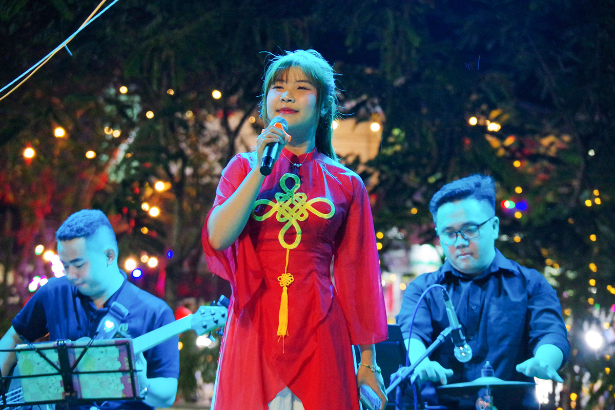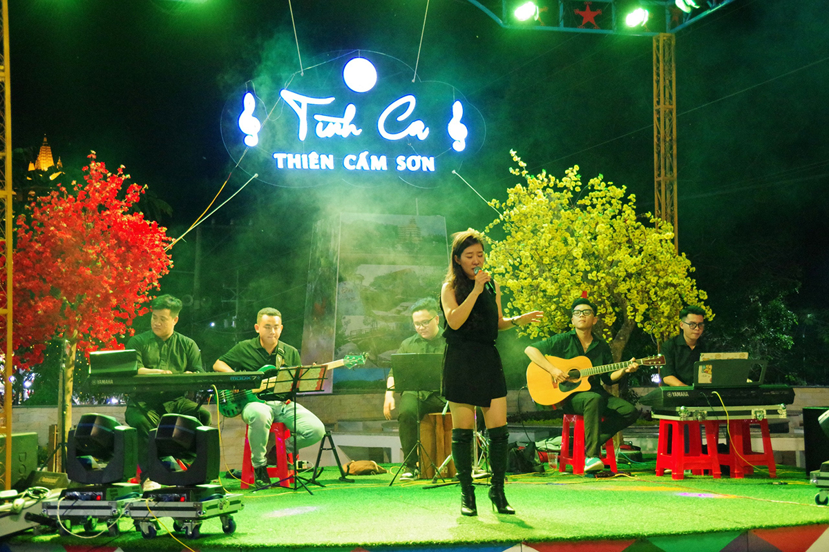 音楽番組「ティエンカムソンの愛の歌」に合わせて歌う