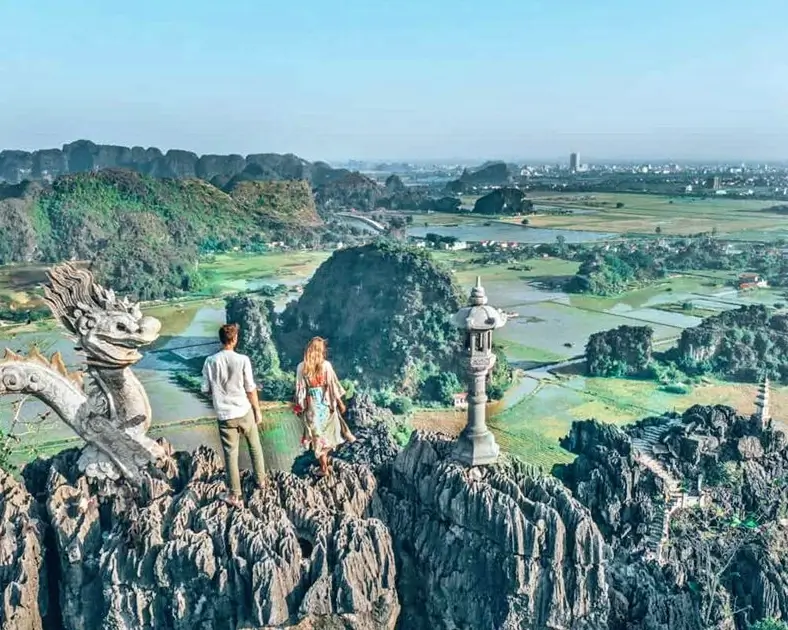 外国人観光客はムア洞窟にチェックインし、ベトナムのニンビンにある美しいタムコック - ビックドン洞窟群のパノラマ景色を体験します。写真: sunchasingtravelers