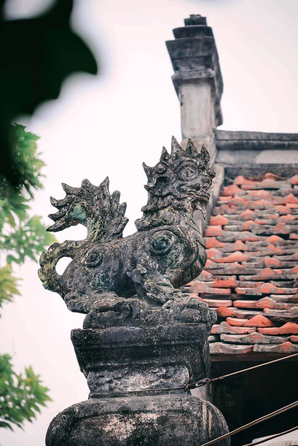 大蘭共同住宅と塔の遺跡群は、1989 年に文化情報部 (現文化体育観光省) によって国家建築芸術遺跡に指定され、多くの人々が訪れる目的地となっています。建築のユニークな特徴と人々のフレンドリーさとおもてなしのおかげです... ダイ ラン共同住宅と塔(タン トリ地区、ズエン ハ コミューン、ダイ ラン村)は 17 世紀頃に建てられました。以前、遺跡群は川岸の近くにありましたが、時間の経過とともに川岸が侵食されたため、村人たちは現在の場所に移転しました。 大蘭共同住宅 ダイラン共同住宅は、村の寺院の三宝の左側近くに位置しており、3 つの前室と 2 つの奥の部屋を含む「ディン」型の建築になっています。大蘭共同住宅は 3 つの区画と 2 つの区画に分かれており、4 つの湾曲した屋根があり、屋根は様式化された太陽を持った虎の側面にある 2 頭の龍で覆われており、屋根の両端には 2 頭の龍が屋根を支えており、屋根は覆われています。ドラゴンの頭は共同住宅に向かって曲がっています。内部の屋根の支え梁は上鉦と脇梁、下ポーチ、七ポーチ、七背の形式で、表面は四列の柱で造られています。大蘭共同住宅の建築装飾は主に、残っている頭部、龍を彫った柱、四聖獣、四宝に焦点を当てており、これらは伝統的な民間信仰建築でおなじみのテーマです。 ダイ ラン共同体は、村の 4 人の氏神 (フンキン時代の 3 人、敵の鎮圧に貢献したリン ホー、ミン チャウ、チャ リュック、および大臣を務めたレー王朝の偉大なマンダリン、グエン ヌー ドー) を崇拝しています。大使を3回務めた(中国)。 ダイ ラン共同住宅には、レー王朝とグエン王朝の 11 件の叙階文、巻物、ハンモックの扉、竜の玉座、位牌、香炉、慰霊碑、特に 17 世紀から 18 世紀に作られた 4 つの駕籠セットなど、多くの貴重な遺物が保存されています。特筆すべきは、大きな巻物状の横軸と、その下に家中に張り巡らされたハンモックドアがあり、この二つの遺物は、透かし彫りや金蒔絵の技法で装飾されています。太陽を横切る龍、水を転がす龍、真珠を描く龍と馬…横板の縁に装飾が施されています。ハンモックのドアの上部には虎の顔を挟む一対の大きな龍があり、両側には水を噴き出す龍、鳳凰、龍馬の像が装飾されています...これら 2 つの工芸品の下には、エンボス技法で細心の注意を払って装飾された木製の平面があります。虎の両側に葉を持つ様式化された龍、中央には龍と鳳凰があり、中央の太陽に向かっています... 本堂には、繊細な彫刻が施されたハンモックドアに掛けられたスクロールの形で作られた水平パネルがあります。そこにある装飾はすべて、伝統的な彫刻のテーマを示しています。日本王朝の 2 頭の龍、水の中を転がる龍、真珠を描く龍と馬、踊る鳳凰などです。以下は、境界線の周りに隠れた彫刻が施された香炉です。両側の部屋には、禁断の宮殿への入り口の上に水平のパネルが吊り下げられています。ハレムには大きな宮殿があり、そこには竜の玉座と四氏の守護神の石板が置かれています。ハレムには、竜の玉座と村の 4 つの氏神の石板を備えた大きな宮殿もあります。 大蘭村の祭りは1月6日、7日(本祭)、8日の3日間行われます。年に一度の祭りでは、神の功徳を偲び、同時に村の平和を守る力と知恵を発揮するために棒術は欠かせません。 大蘭塔 ダイ ラン パゴダ (フォー フエ トゥ)、もともとはデュエン ハ コミューンのダイ ラン村の本拠地でした。なぜなら、塔は過去に何度も移転しており、最も最近のものは1959年に紅河の流路が変わり、塔の土地が崩壊したため、それ以来、村人たちは仏像と崇拝品を村に移して礼拝したためです。パゴダは寺院に変身しました。 かつて、この建設現場は「ナット以前とディン以降」の構造を持つ大規模な建築規模を誇っていましたが、時間の経過とともに記念碑は著しく劣化しました。 2010 年、政府と地元住民は、ティエン ズオンやアッパー パレスなどの村の共同住宅に近い、村の始まりの土地に位置するディン建築構造物で現在のタンバオ パゴダを改修しました。旧作の半券。 2012年に祖先の家と母の家が建てられました。 2013年にゲストハウスが完成しました。 フロントホールは5つのコンパートメントと3つのアッパーパレスコンパートメントで構成されています。塔はレンガの壁で周囲を囲んで建てられ、破風の壁は閉じられており、堤防の先には階段状の玉座があり、瓦屋根が二層あり、屋根の中央には巻物があり、内側には漢字が浮き彫りにされていた。両端には塔の名前があり、屋根を支える二頭の葉龍が屋根を覆い、二本の妻壁は中二階の壁で二本の柱とつながっており、柱の頂部には四羽の鳳凰が尾を合わせて覆われている。 、その下には4つの神聖な動物(龍、ガラス)が浮き彫りされたランタンボックスがあります。、亀、鳳凰)、柱の本体はエンボスエッジで覆われており、内側には塔の美しい景色を讃える漢字が書かれていますそして仏教の慈悲、