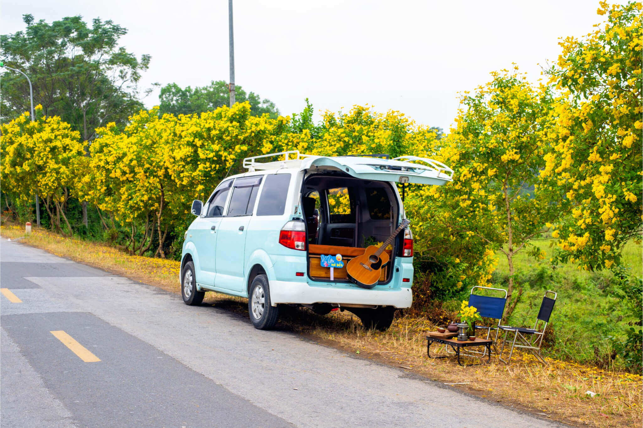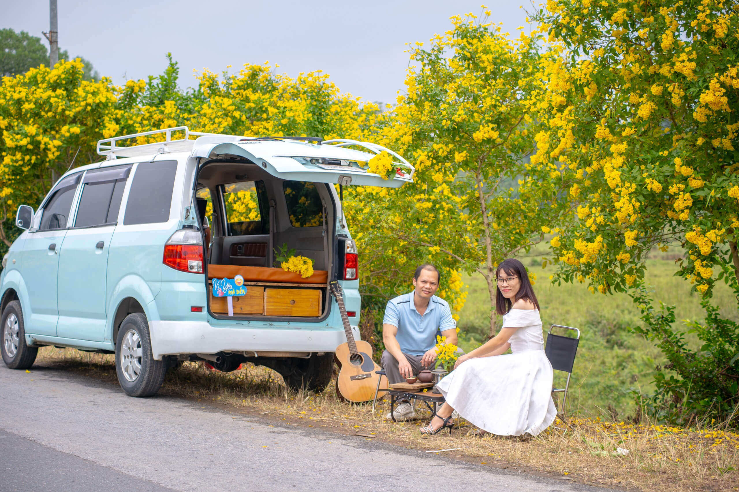 道の両側に咲いている花は黄色い桔梗であることが知られています。訪問者はソンタイ城塞からドンモー湖へ移動するときにこの道に出くわすことがあります。