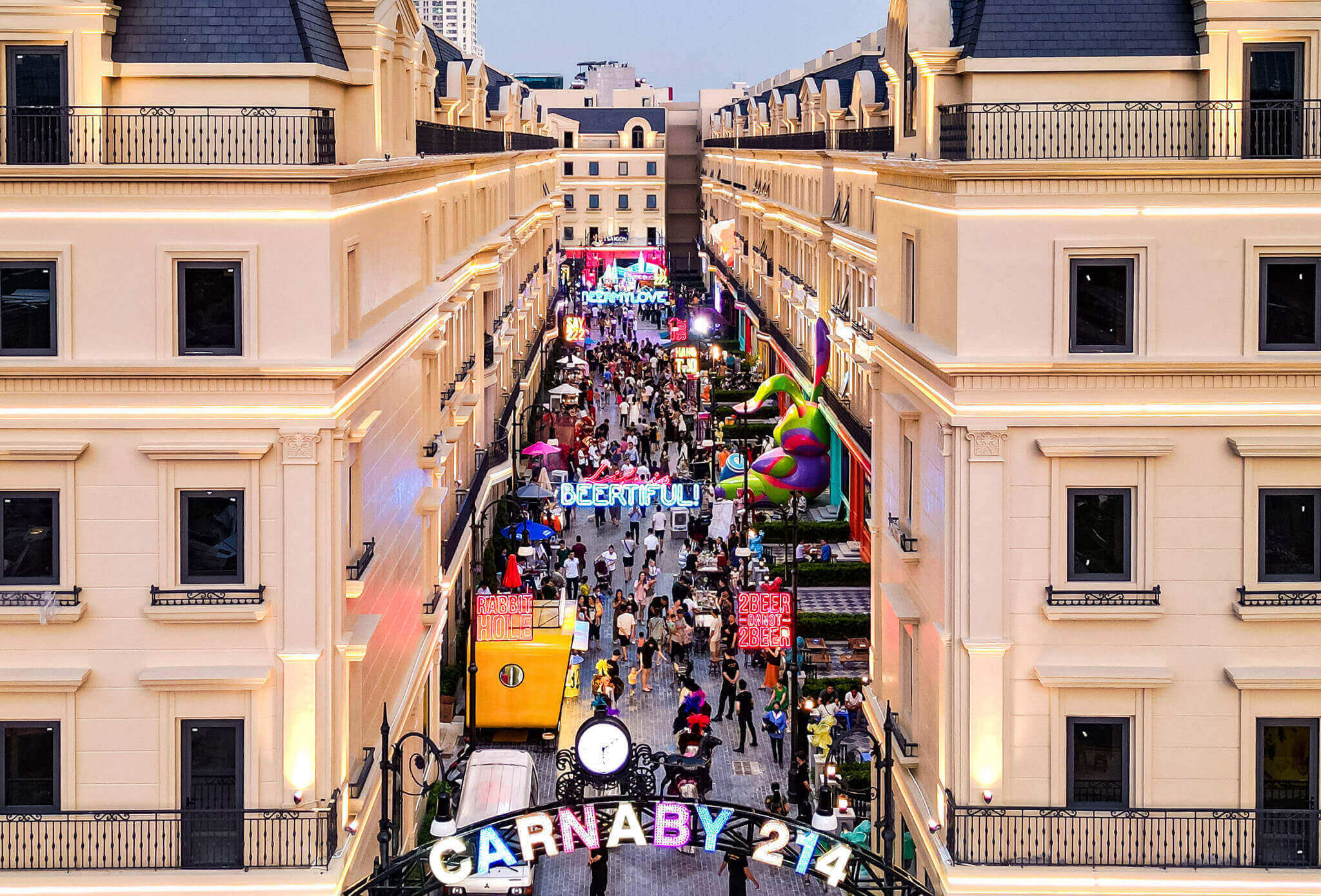ロンドン (英国) の有名なカーナビー ウォーキング ストリートからインスピレーションを得た、「ウサギの洞窟」としても知られるこのウォーキング ストリートは、ハディン新市街地のルー ド シャルム複合施設の中心部、グエン シエン 214 に位置しています。
