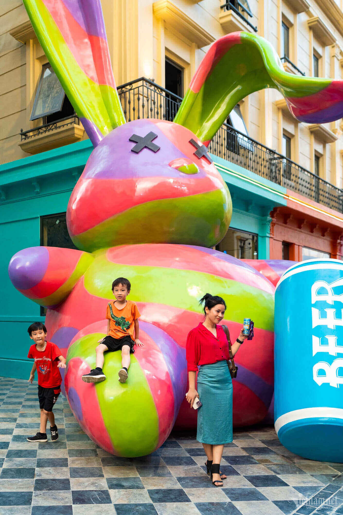 カーナビー 214 ウォーキング ストリートの目玉は、中央に配置された高さ 7 メートルを超えるカラフルな巨大ウサギです。