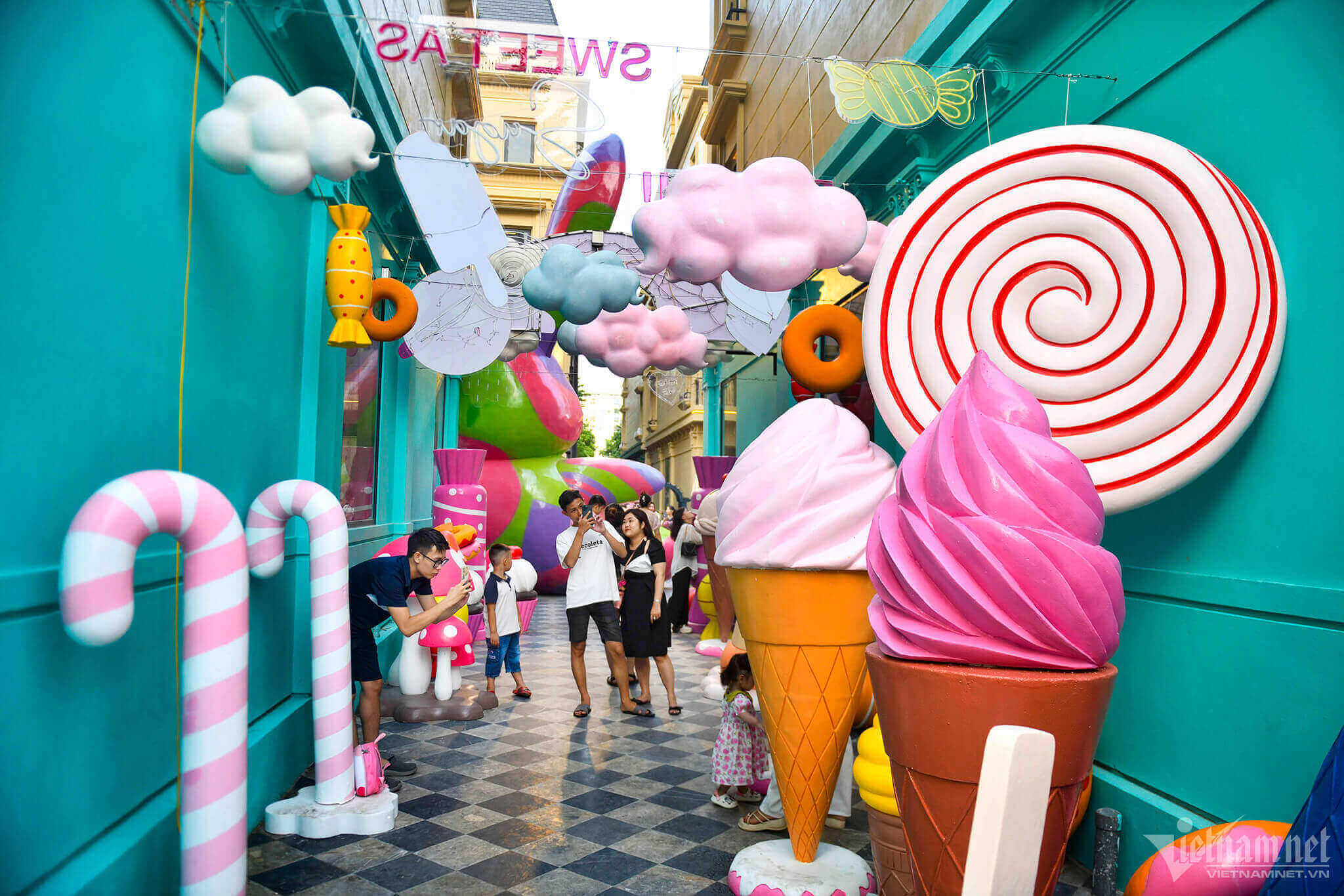 数日前に開設されたばかりの、ハディン新市街地(ハノイ)の複合都市シャルム通りに位置するカーナビーウォーキングストリートは、旅行しているかのような空間のおかげで多くの若者がチェックインに訪れます。