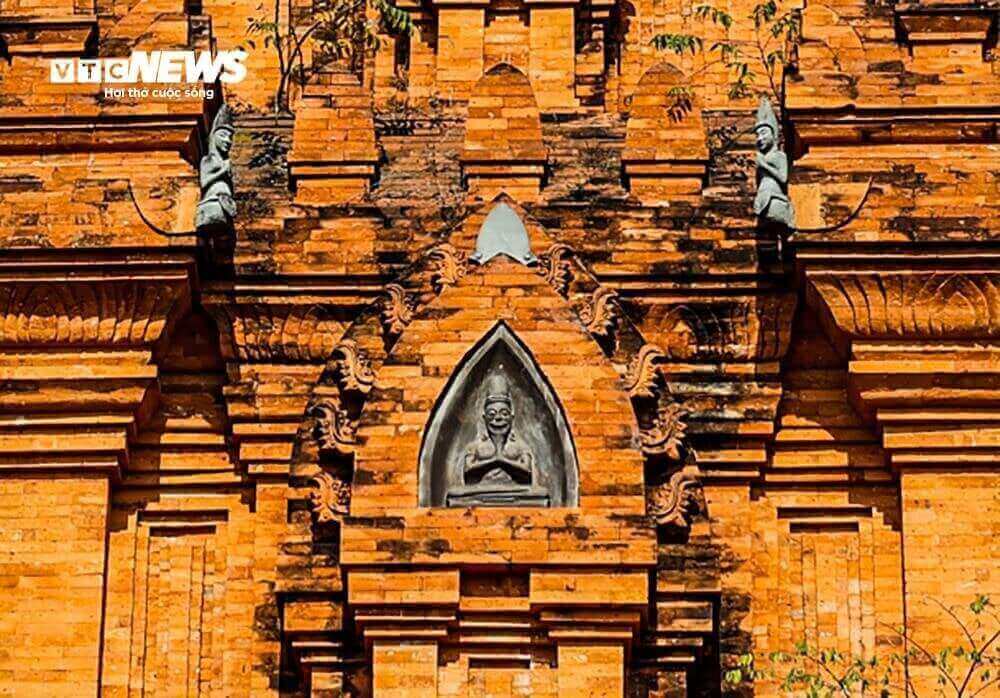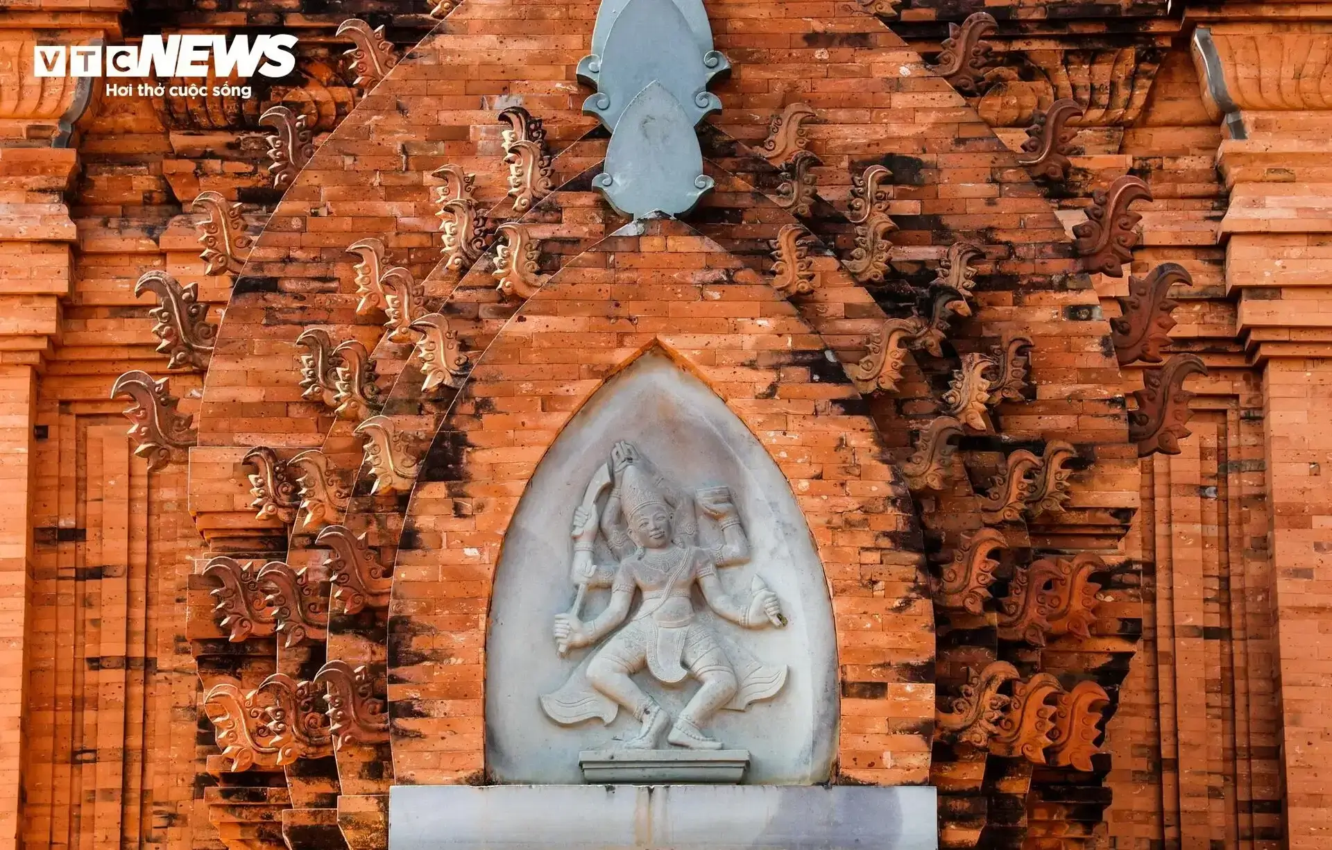 入口のドーム状の龕は、石柱、石の敷居、石像で装飾されています。石はリンガとヨニの素材でもあります。主塔の中央にある 2 つのブロックのオブジェクトは、チャム族の深い豊饒信仰を表現しています。
