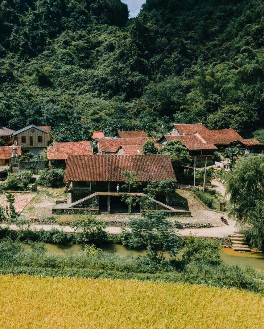 クオイキー村は、村の入り口にある緑の小川にちなんで名付けられました。家々はすべて石で建てられ、屋根には伝統的な陰陽瓦が葺かれています。
