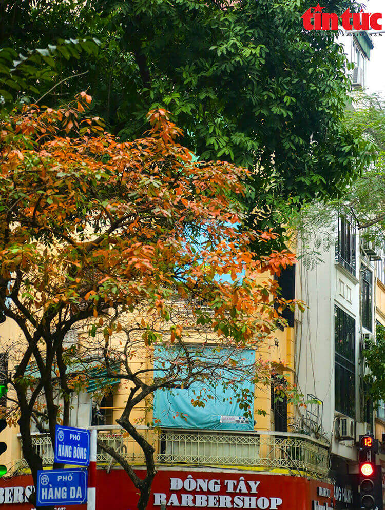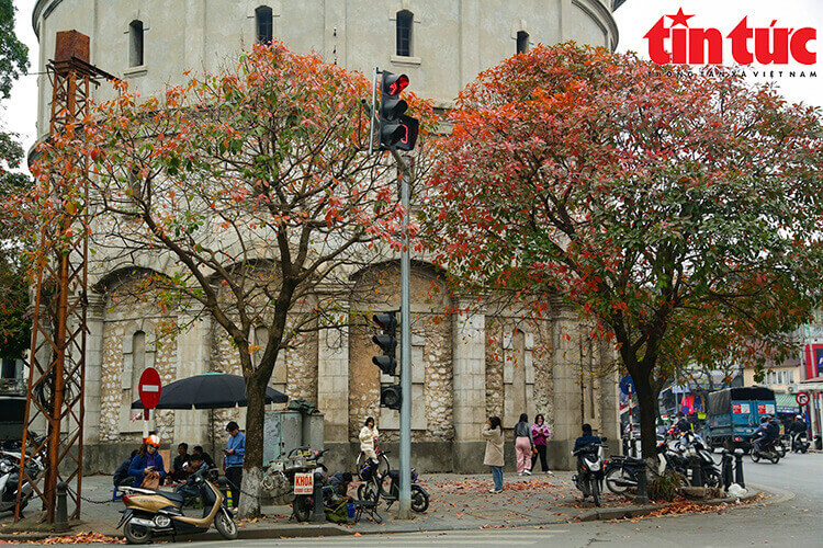 ハノイの多くの通りは、紅葉の季節になるとゴマやアーモンドの木の赤い色で満たされ、街路の彩りを高めます。
