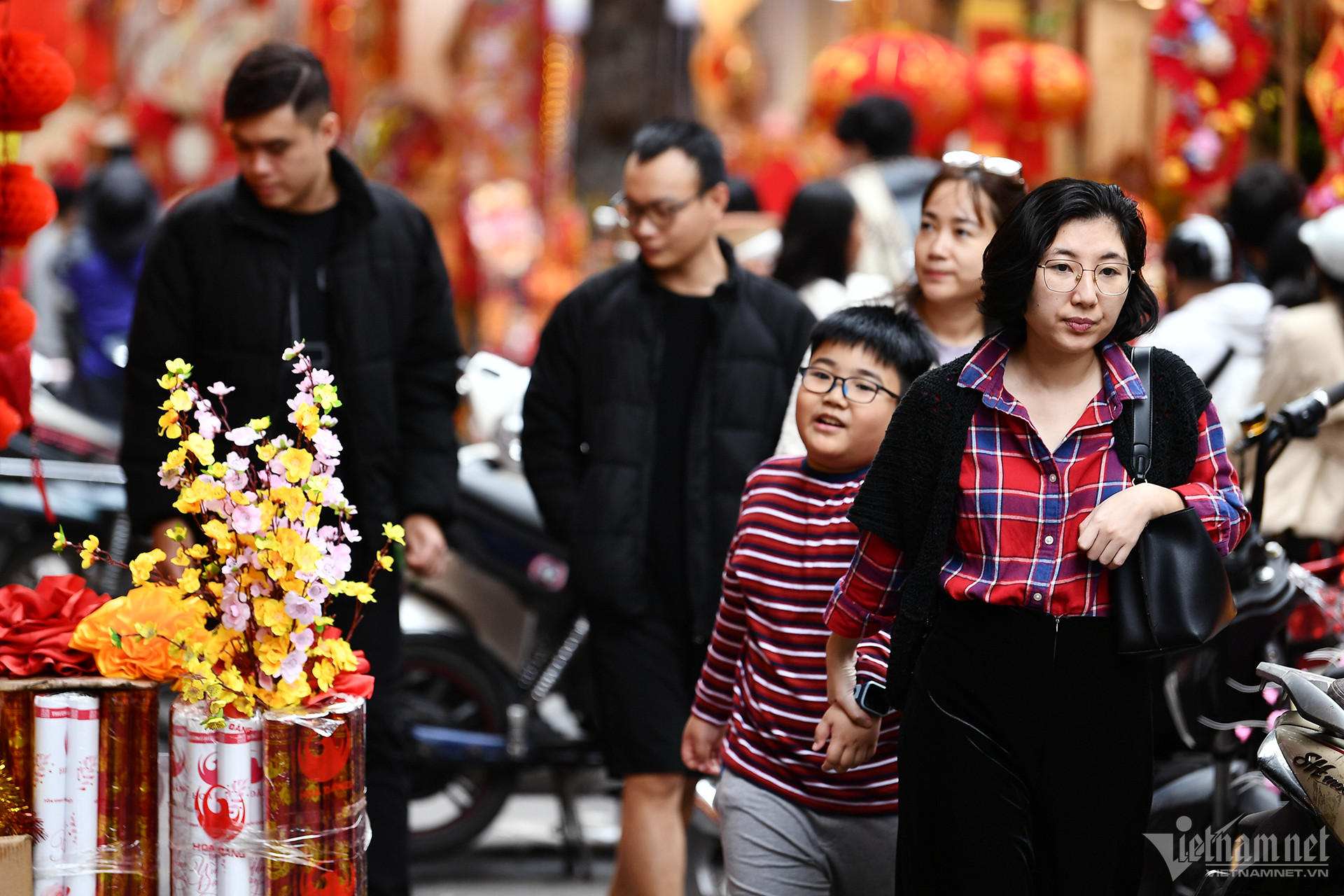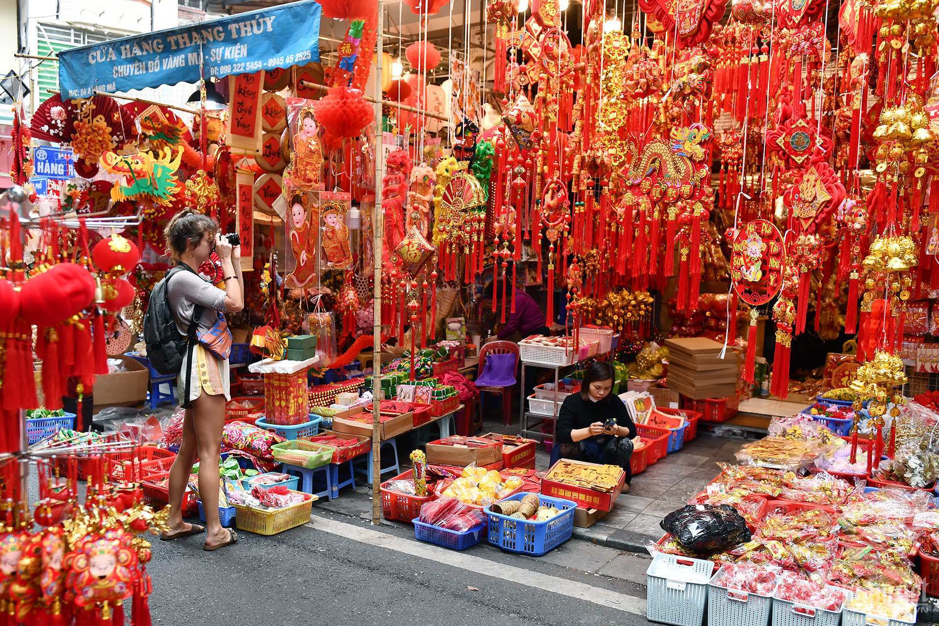 2 月 3 日(12 月 24 日)、ハノイ旧市街で最も伝統的な市場に、散策や買い物をする多くの観光客が集まります。