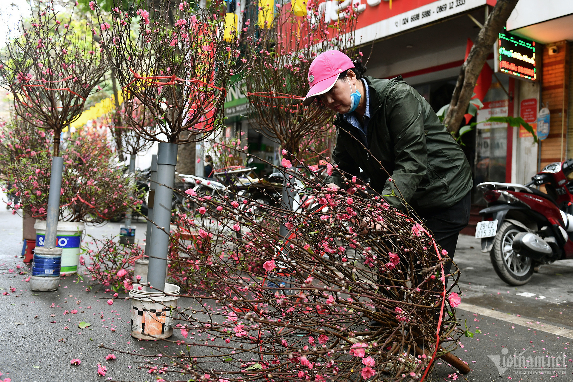 桃の花は枝が多くて選びやすい時期です。こだわりのある人はテトの一週間前に購入することが多く、テトの30日よりも価格は高くなりますが、その代わり買いやすく、ぴったりの種類が見つかりやすいです。