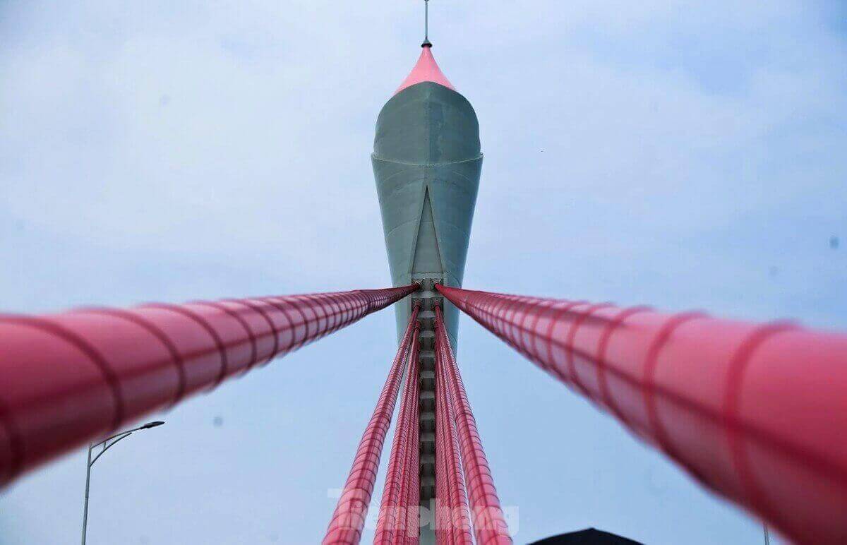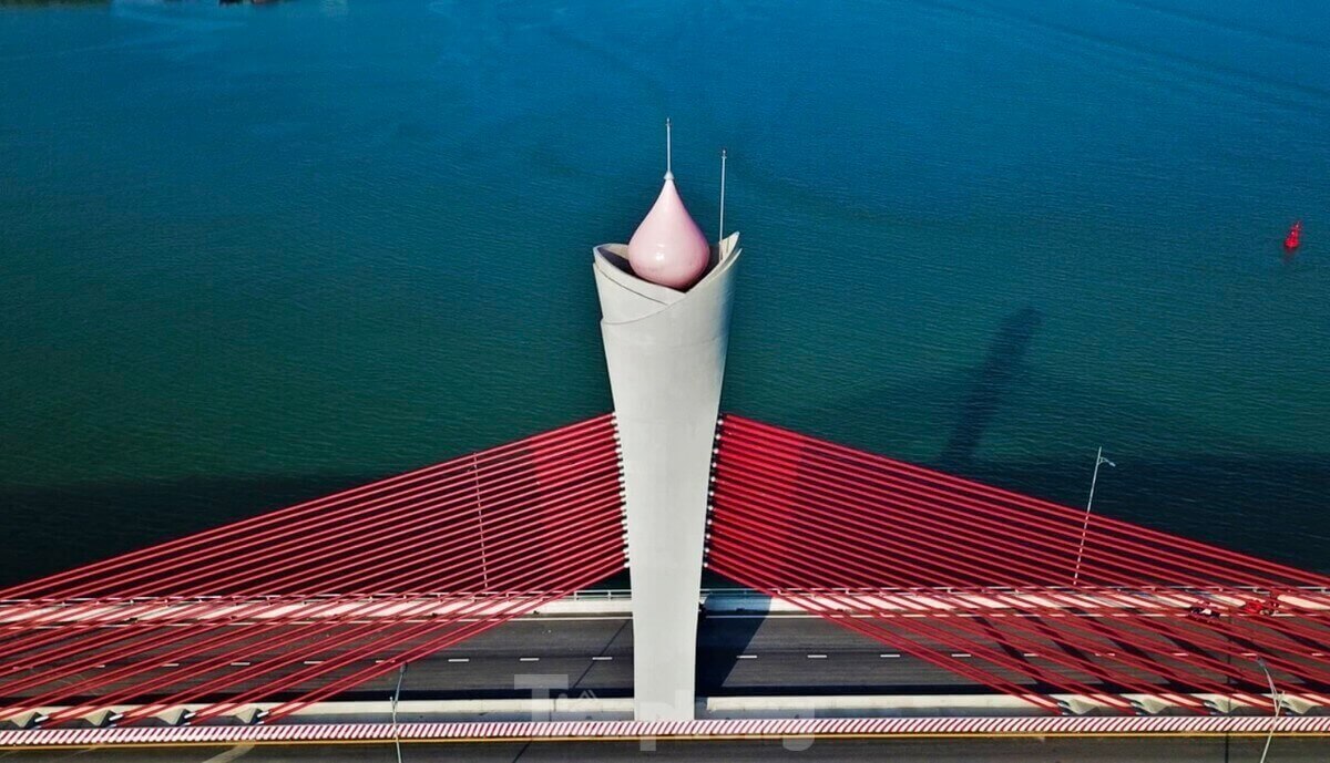 橋の建築上のハイライトは、蓮のつぼみのシンボルが描かれたコンクリート柱の上にあります。このコンクリート柱は、下に伸びるケーブルステーが設置されている場所でもあります。