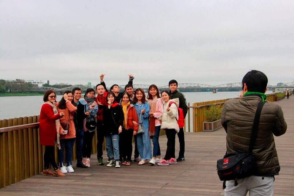 新年にフエを訪れる観光客は、ウォーキングやサイクリングを体験して香水川とこの歴史的な橋を行き交う人々の流れを眺めることができると同時に、家族、親戚、友人との思い出に残る瞬間を残すことができます。