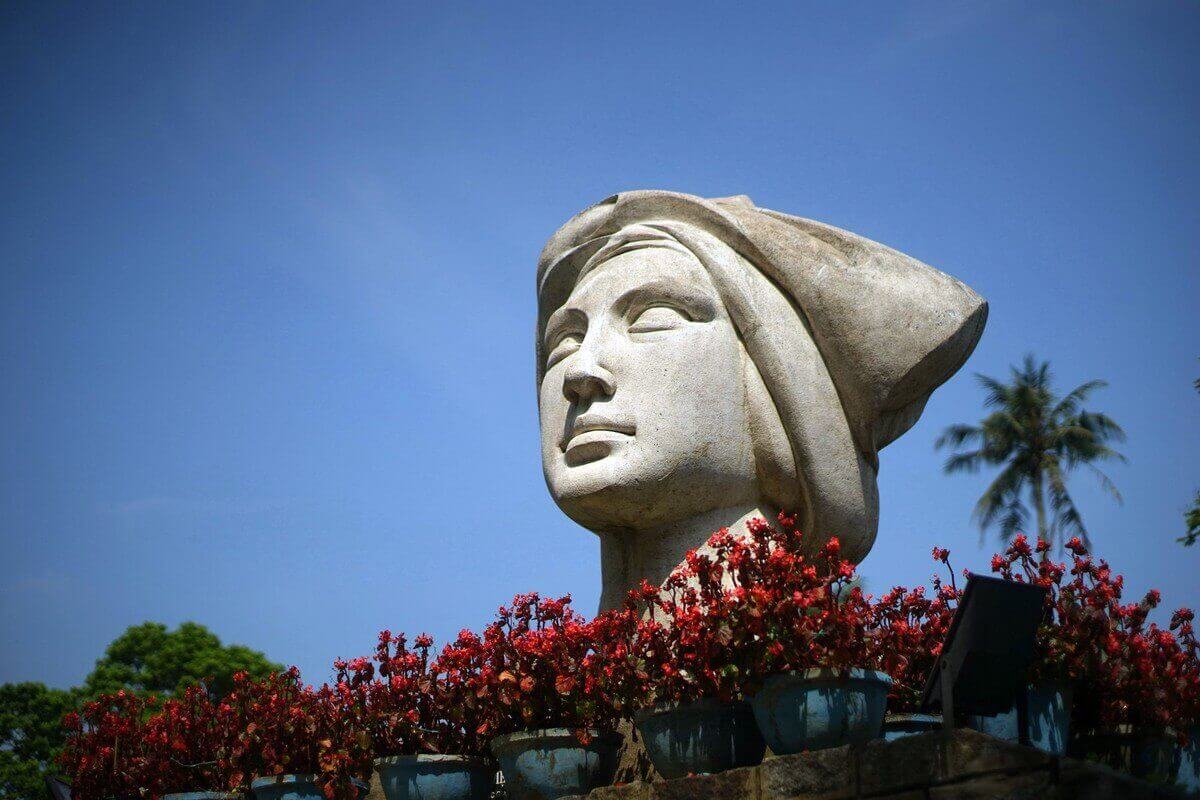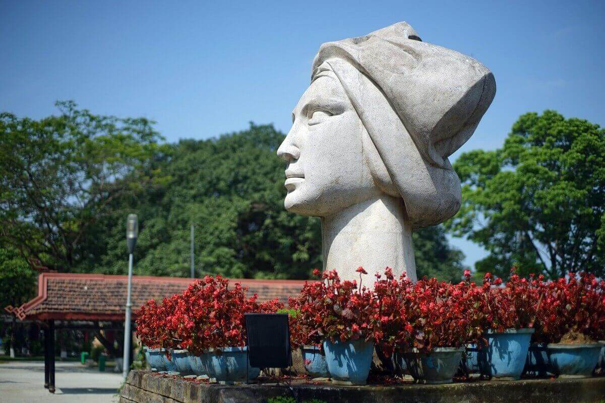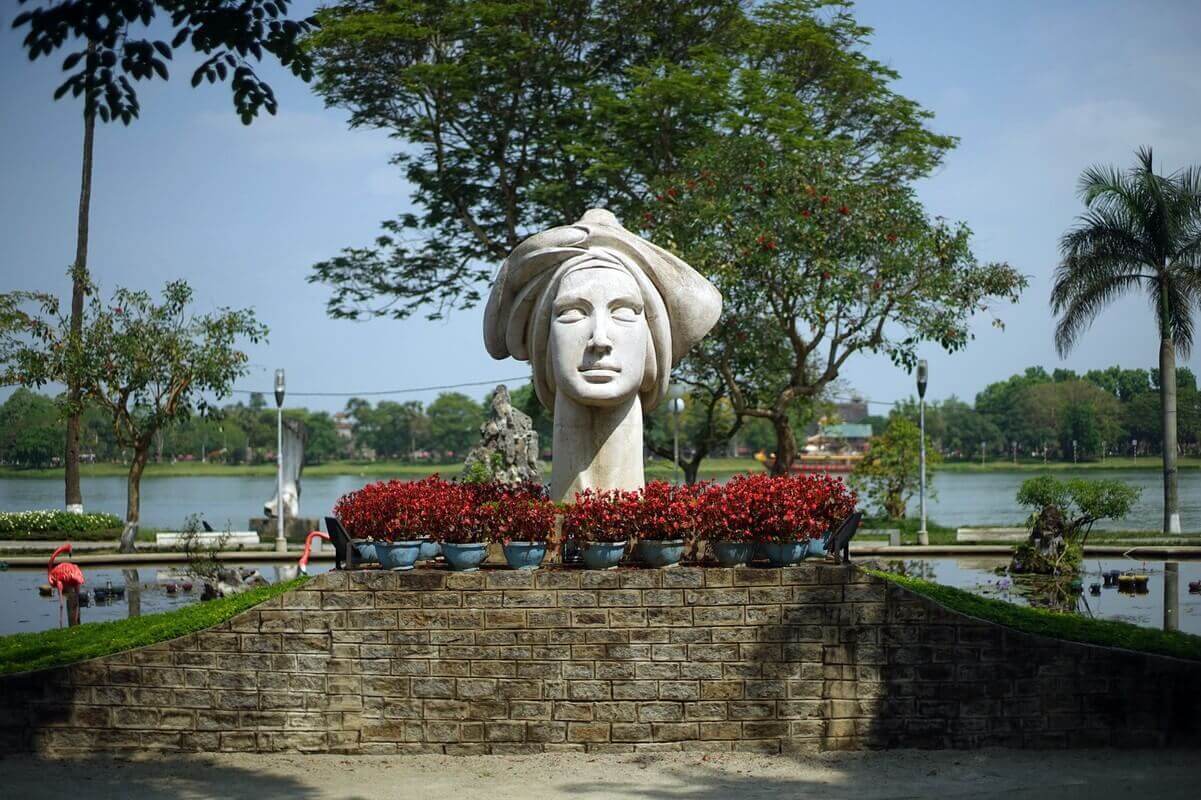 1. 香水川の南岸にあるハイバーチュン公園にあるベトナム少女の像は、フエの非常に特別な歴史を持つ彫刻です。この像は、1970 年にサイゴンにある彫刻家の故レ・タイン・ニョン氏によって彫刻されました。この像は胸像のスタイルで石から彫られており、高さ 2.6 メートル、重さ約 5 トンで、古いスタイルのスカーフを頭に巻いた繊細な顔のベトナム人女性の肖像画を表しています。