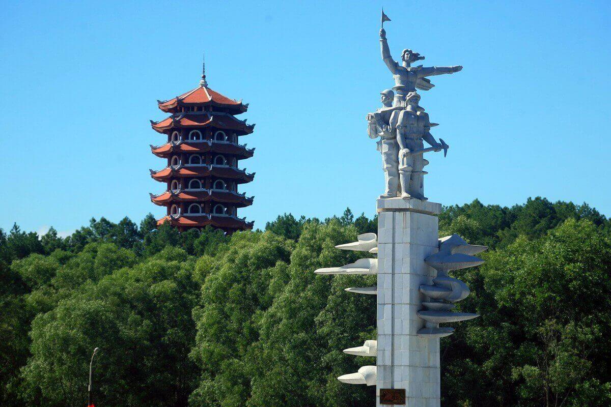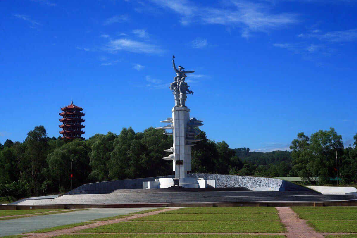 2. ドンロクジャンクション歴史遺跡地域 (ハティン省カンロク地区) に位置する戦勝記念碑は、勝利への意志と、青年義勇軍と兵士、労働者、民兵、ゲリラの犠牲を称える作品です。 ..対米抵抗戦争中のホーチミントレイルにて。記念碑の目玉は、旗を振って船団を南部に誘導する若い女性ボランティアの像です。