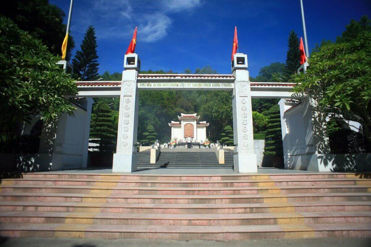 ベトナムの英雄的な母の記念碑は、総面積 15 ヘクタールのキャンパス内にあります。建築群の中心は、長さ 100 メートルを超える弧状の砂岩で作られたベトナムの英雄的な母グエン ティ トゥ (1904 ~ 2010 年) の記念碑です。船首の両側には、フランスとアメリカに対する二度の抵抗戦争で亡くなったマザー・トゥーの子供たち 11 人の像が刻まれています。