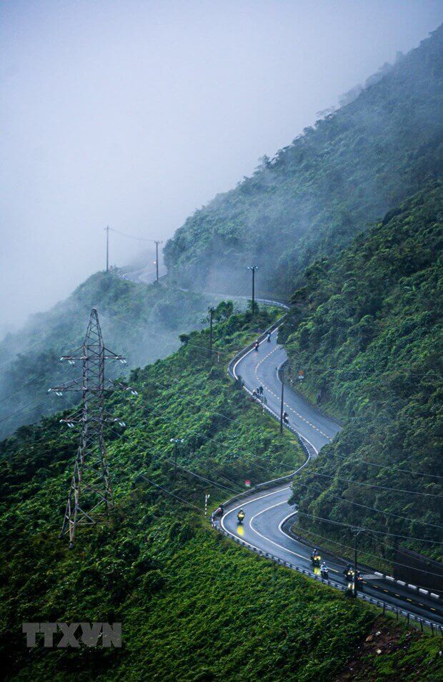 ハイヴァン峠の曲がりくねった雄大な曲線。 (写真:ヴァン・ズン/TTXVN)