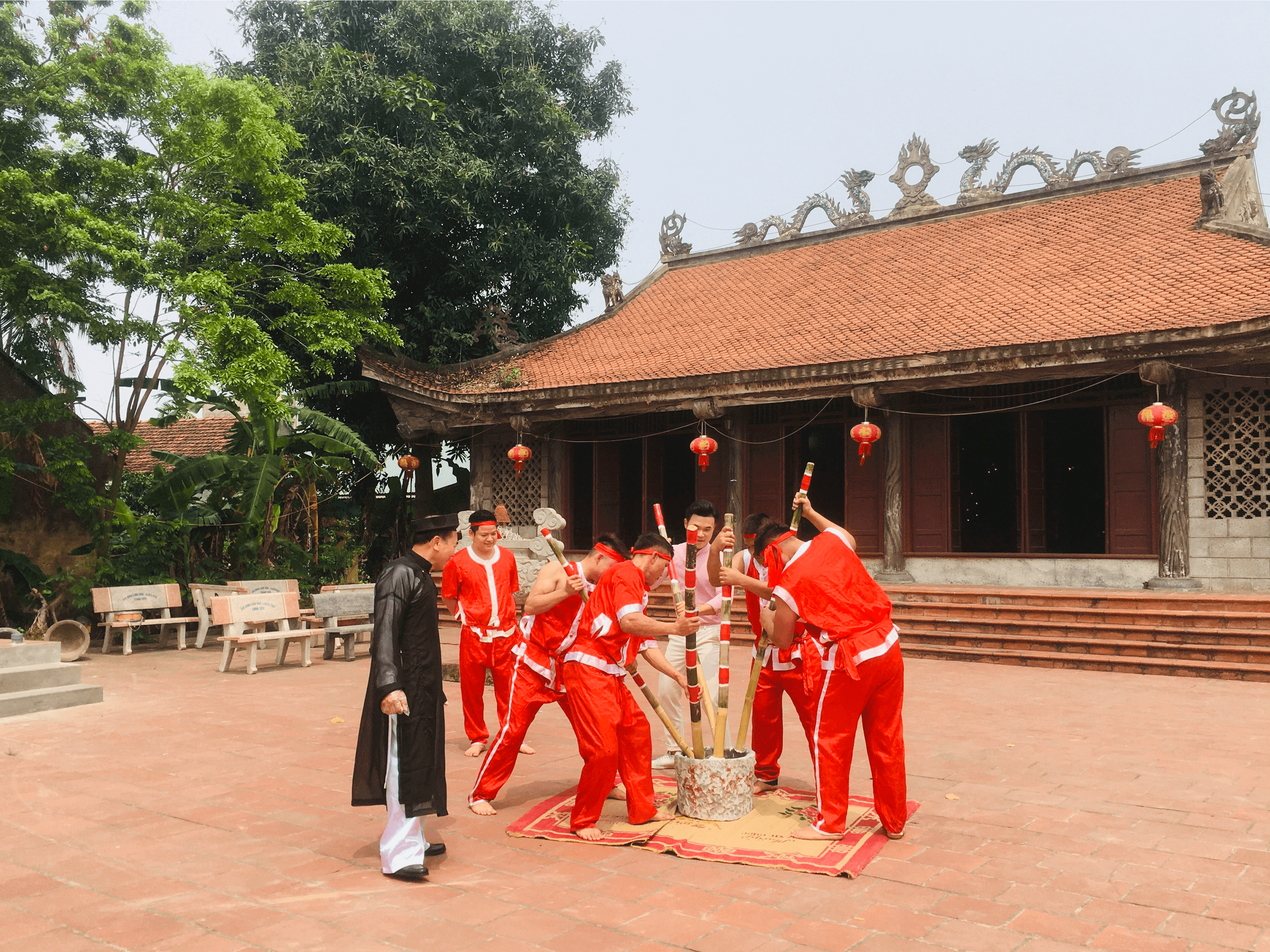 ハイ・バ・チュンがメリンで反乱の旗を掲げたとき、彼女はハイ・バ・チュンとともに帰還するボンチャウの反乱軍92名を選んだ。ハイ・バ・チュンはハン・ヌオンが聡明で文武の才能があり、軍を率いて勝利を収めることができると見て、彼女にゴック・ローン王女の称号と前線軍の指導者の称号を与えた。トーディンの敵を破った後、女性将軍グエン・ティ・ハンは故郷を訪れ、軍隊を歓迎し、村民に褒美を与えるために晩餐会を開きました。功徳祭は、タオ川のほとりにある飲み水を横たわるホワイトタイガーのような形をした岬で開催された。その後、村人たちはここにドゥエン宮殿と呼ばれる寺院を建てました(現在はチーティエンコミューンのドゥイェン寺院)。以来、村人たちは毎年1月の満月の日に感謝の気持ちを忘れず、晴天に恵まれ、家内繁栄と幸福を祈る祈願祭を行っている。