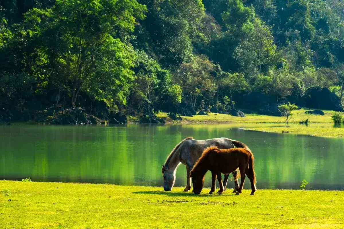 ドンラム草原は、巨大な象の岩、洞窟、地下の流れ、澄んだ湖、緑の草原に囲まれています。すべてがとても魅力的で詩的な場所を作り出しており、ここを訪れる誰もが自然に溶け込みたくなるような場所です。