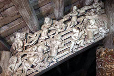 ディン・ロー・ハン ローハン共同住宅は、チャム、チュン、コート、チュア、ハンの5つの村の共同住宅であるため、カ共同住宅とも呼ばれます。この共同住宅はソンカン 11 年 (1576 年) に建てられ、フン王の時代に国と人民に功績を残した 2 人の神、カオ ソン ダイ ヴオンとフォン ズン ティエン チュアを祀っていました。ロー ハン共同住宅には、龍、鳳凰、鹿、花、人間の活動の場面などの洗練されたユニークな彫刻が施されており、独特の文化的価値を持っています。現在、この共同住宅には、ハーレムのドアの前の中央スペースにある「八仙図」の漆絵 2 枚、17 世紀の漆塗りと金メッキの木製椅子 1 脚、フォン ズンの像など、多くの貴重な遺物が保存されています。ティエン・チュアと曹操のタブレット、特に底楽器をかき鳴らす妖精の彫刻は、ベトナムにおけるカ・トゥの誕生と初期の発展の証です。当初、ローハン共同住宅には「第一」の字をした大きな共同住宅しかありませんでした。 1694 年、1850 年、1910 年に度重なる改築を経て、ハーレムと左右 2 列の vu を備えた共同住宅が建設されました。大共同住宅の床の長さは 23.5 メートル、幅は 12.3 メートル、屋根の梁から下の高さは 6.6 メートル、屋根の端から下の高さは 2.1 メートルです。 5つのコンパートメント、8つの垂木を備えた2つの翼、4つのメイン列の柱、およびトラップの下を支える2列のポーチ柱が含まれます。トラスの構造は異なり、中央の垂木はすべて「梁と鉦を積み重ねる」スタイルで作られ、側面の垂木は「鉦を広げる人」のスタイルで作られています。 1982 年 12 月 24 日、ロー ハン共同住宅は文化省 (現文化体育観光省) によって歴史的遺物に指定されました。 出典: バクザン省のベトナム観光を発見する