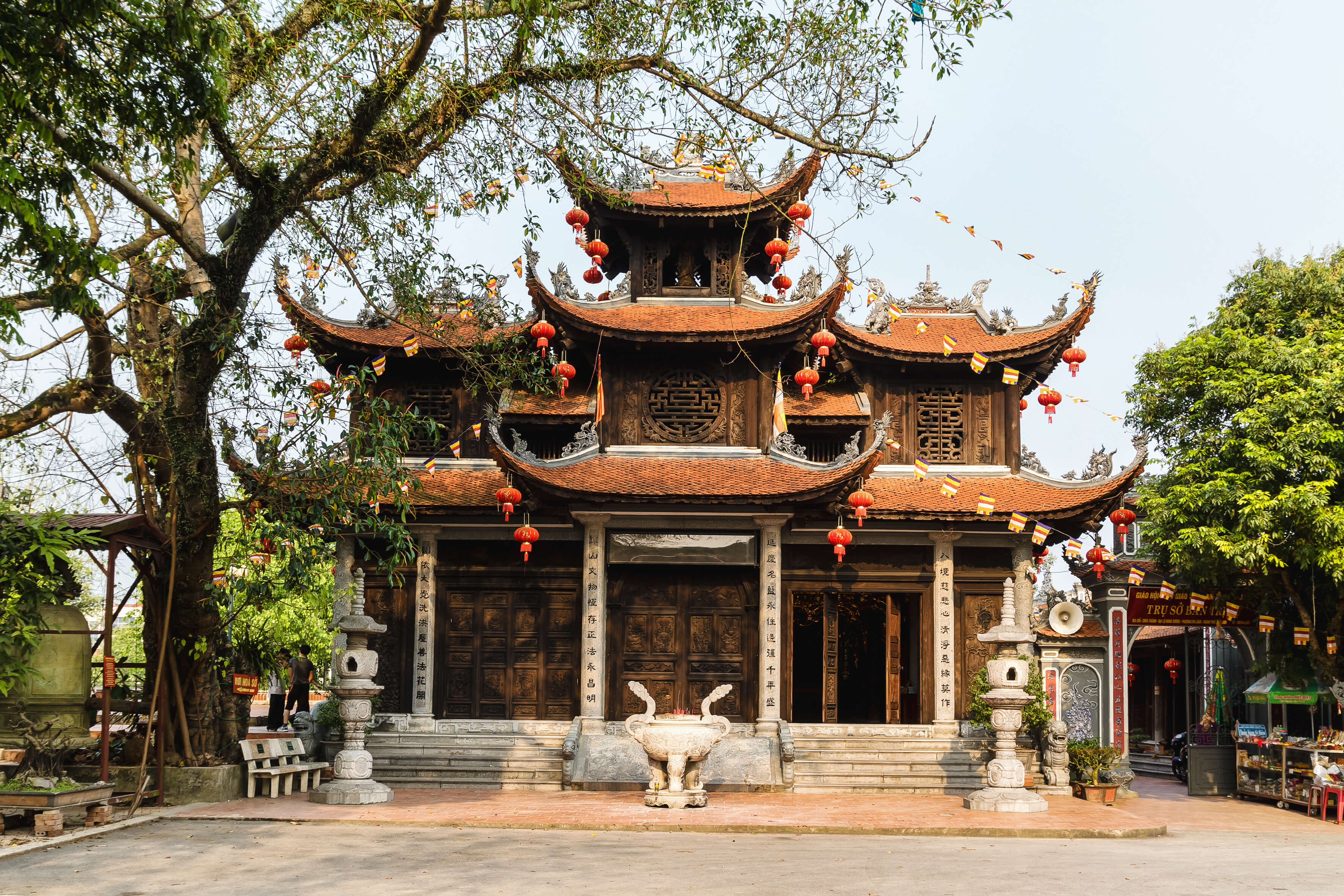 ビンキン共同体としても知られるグエン・ヒュ・カイン寺院はドンナイ川の左岸に位置し、以前はチャンビエン州ビンホアン村のビンキン村に属し、現在はビエンホア州ヒエップホア村のニーホア村に属していた。 1991 年 3 月 25 日に文化情報スポーツ観光省によって国家歴史遺物に指定されました。 グエン・フ・チャン寺院は、現在の寺院から約400メートル南に位置し、当初は板張りの壁と陰陽瓦屋根の小規模な寺院でした。文書には次のように書かれています。寺院はトゥドゥック 4 年 (1851 年) に初めて再建されました。 1923 年までに、寺院は現在の場所に再建されました。 グエン・フ・カインは、1650 年にタインホア省トンソン地区のギアミウで、王朝の多くの有名な将軍がいる家系に生まれました。彼は文武両道の人であり、数々の偉業を成し遂げ、グエン卿から信頼され、愛され、尊敬されていました。マウ ダン (1698 年) の春、彼はまだ荒廃していたダン チョンに侵攻するというグエン卿の命令に従いました。ドンナイに到着した彼は、クーラオポー(現在のヒエップホアコミューン)に本拠地を設置した。ドンナイの土地をフックロン地区として取り、チャンビエン宮殿を建て、サイゴンの土地をタンビン地区として取り、フィエントラン宮殿を建て、土地は数千マイルに拡張されました。彼は定住する移民を募り、行政機構を段階的かつ組織的に組織し、土地の埋め立てを奨励し、クーラオポーをこの世紀を通じて最も活気のある最も活気のある港町の一つに発展させることを促進し、南部の新しい土地を正式に併合しました。 Dai Vietマップに追加します。南部の侵略から帰還した後、翌年、彼は再びグエン・フック・チュー卿の命令に従い、チャンラップ王を制圧し南部国境地域を維持する軍隊を率いました。 Canh Thin 年 (1700 年) 4 月、任務を終えてラックガム (ティエンザン) に戻る途中、彼は病気になり、陰暦 5 月 16 日に 51 歳で亡くなりました。古い。埋葬のために故郷に向かう途中、彼の棺は、地元の人々が最後にもう一度彼に別れを告げる機会を持つことができるよう、かつて彼が本拠地を置いていたクーラオフォーの土地に停められた。マンダリンの共同住宅には、地元の人々がこの出来事を偲んで墓を建てました。グエン・フ・カイン氏の訃報を聞いたとき、グエン卿は非常に残念に思い、彼に「タン侯爵式」という町宰相の高官の称号を授与し、その位牌をタイの寺院に祀らせた。 出典: ドンナイ電子新聞