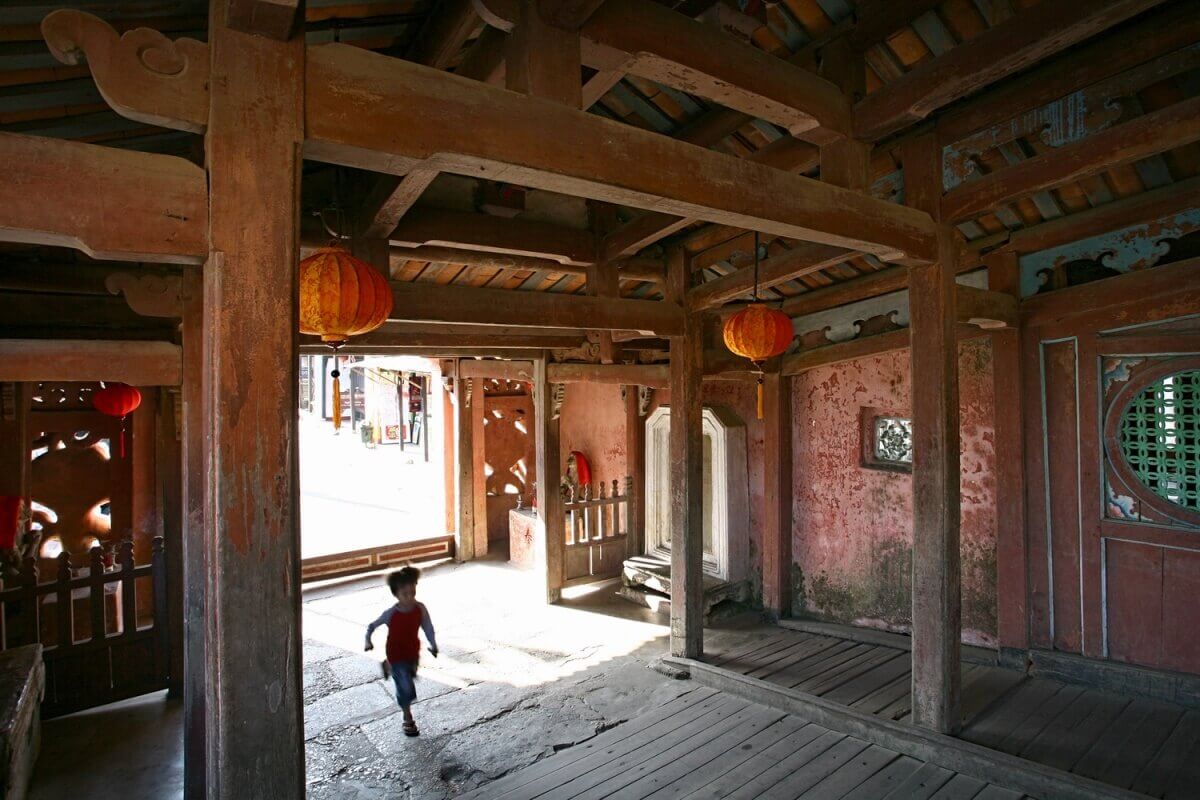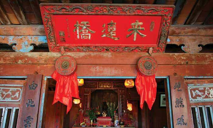 ホイアン屋根付き橋は、ホイアンの古代都市ミンカイ区のグエン ティ ミン カイ通りにあります。屋根付き橋はトゥボン川の小さな支流に架けられ、ホイアンの古代都市の主要道路であるグエン ティ ミンカイ通りとチャン フー通りを繋いでいます。 屋根付き橋の主な構成要素は、塔と橋の 2 つの部分で構成されます。塔の面積は約60平方メートルで、北方皇帝チャン・ヴォを崇拝するために建てられました。橋の面積は75平方メートル、長さは約18メートル。 カバード ブリッジについては、なぜ 2 つの部分に分かれたかを説明する伝説があります。 17 世紀、日本の商人は資金を出し合って、怪物ナマズ (頻繁に尻尾を振って地震を引き起こす怪物) を制御して生活を平穏に保つことができるように、その背中に突き刺さる剣を象徴する橋を建設しました。 。 しばらくして、橋の北側に塔が建てられたため、新しい橋はチュアカウと呼ばれるようになりました。 1719 年にホイアンを訪れたグエン フック チュー卿は、この橋を「遠くからの客人を迎える橋」という意味の「ライ ビエン キエウ」と名付けました。 特に、1990 年にカバード ブリッジは国家歴史文化遺物として国家に認定され、そのイメージはベトナムの現在の 20,000 VND ポリマー紙幣に描かれています。 橋上の塔のスペースは非常に小さく、まだ橋塔と呼ばれていますが、仏陀を崇拝していないため、初めて訪問する人は驚かれるかもしれません。塔は橋の小さな隅にあり、扉は中国の文化的建築に従って建てられ、多くの洗練されたモチーフが彫刻されています。パゴダの中央には、周囲の住民の平和と平穏を祈る願いを込めて、北方皇帝トラン・ヴォ将軍の木像が建てられています。 ホイアン橋塔は17世紀頃に日本人商人によって建てられたもので、「日本の橋」と呼ばれることもあります。しかし、全体としては、中国、日本、ベトナムの 3 つの文化の流れが巧みに混ざり合って屋根付き橋を作り上げていることがはっきりと感じられます。陰陽様式の屋根は、ホイアンの古代住宅によく見られる特徴です。 扉のすぐそばには猿の像と犬の像という二体の聖獣像があり、怪物が屋根付き橋に襲来して侵入するのを阻止するという意味が込められています。これらの彫像はジャックフルーツの木で作られており、繊細で非常に鮮やかな彫刻が施されており、各彫像の前には香炉があります。 橋の内部の柱や柱には非常に精緻で精巧な彫刻が施されており、かつての旧市街の人々の美意識や信仰心がはっきりと表れています。そのおかげで、ここに来ると、神々への崇拝、困難や悪霊を乗り越えて守ってくれる神の力への強い信仰だけでなく、過去の喧騒を感じることができます。 1990 年 2 月 17 日、カバード ブリッジは国家歴史文化記念物として認定されました。 出典:クアンナム観光新聞