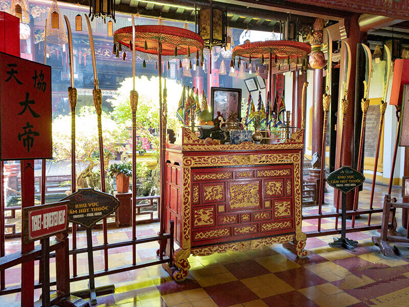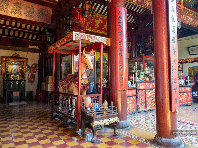 クアンコン寺院(住所 - 24 Tran Phu Street)はオンパゴダとしても知られ、文字通りの名前はチュンハンクンで、17世紀半ばにホイアンに定住したミンフオン族とベトナム人によって一緒に建てられました。 この寺院は、三国時代の有名な歴史上の人物であり、非常に尊敬されている有能な将軍クアン ヴァン チュオン (クアン ヴーまたはクアン コン) を崇拝しています。 「中国十聖」および「四大三国志」の一人であり、義・信頼・忠実・勇気の模範・象徴となり、聖人として讃えられています。クアン・コンを崇拝する目的は、人々が彼の模範に従うことができるように、彼の優しさと忠誠心を賞賛し称賛することです。 関羽は中国の歴史の中で最も有名な将軍の一人です。漢を守り、呉を抑え、魏を滅ぼすなど多大な功績を残した。ホイアンはかつて都市部、つまり中国人商人の貿易契約が頻繁に行われる貿易港であったため、クアンコン寺院は彼らの宗教的ニーズに応じて建てられました。 クアンコン寺院の建築は、前庭、左右の 2 つの宮殿、および大きな本殿の 4 つの建物で構成されています。 4 つの建物はスクリプトスタイルで建てられ、積み重ねられた構造で、独特の瓦と屋根があり、精巧な龍のモチーフで装飾されています。 正殿には、金で浮き彫りにされた龍の刺繍が施されたローブを着たクアン・コンの像があり、その顔は荘厳で明るく、目は恍惚として前を向いています。正殿には 2 つの像もあります。1 つはクアン コンの勇敢で忠実な召使であるチャウ トゥオン、もう 1 つはクアン ビンの忠実な息子の像です。本物の馬と同じ背丈の二頭の馬がいて、左側が白い馬、右側が赤い馬です。クアン・コンがとても大切にしている軍馬です。これらの彫像は精巧に作られており、古代の職人の技術を示しています。 さらに、クアンコン寺院には、多くの柳の額、旗、叙階、石碑、古代の工芸品があります。特に、この寺院には、ビンナム軍の左将軍を務めていた 1775 年にスアン・クアン・コン・グエン・ギエム(偉大な詩人グエン・ドゥの父)が作曲した古代の詩と寓話も保存されています。ウオン・シー・クーとグエン・レン・タンによる2枚の絵画も展示されています。歴史の浮き沈みを経ても、すべてがそのまま残っています。また、18 世紀にダン チョンで起きたチン族とグエン族の紛争の痕跡が今も残っている貴重な歴史的遺物でもあります。 クアンコン寺院は、1991 年 11 月 29 日に国家歴史文化記念物に指定されました。 出典:クアンナム観光新聞