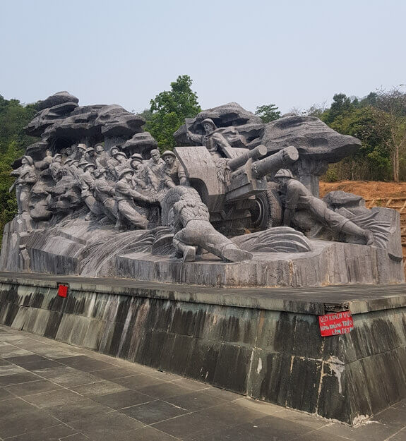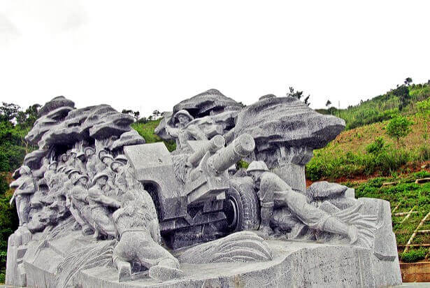 砲撃跡の遺跡は、ディエンビエン省ディエンビエン地区のナニャンコミューンにあり、ナムロム川右岸のトゥアンジャオからディエンビエン方向の高速道路279号線沿いに位置しています。この場所は、前線司令部の戦闘モットーが「早く戦って、早く勝つ」から「しっかりと戦って、しっかりと前進する」に変更されたことを示した。そしてここは、犠牲、困難、艱難、そして戦役準備中の団結と相乗効果、勝利のためにあらゆる課題と苦難を乗り越える決意の精神が刻まれた歴史的な場所でもある。 1954 年 1 月 14 日、トゥアン ジャオ - ディエン ビエン通り 15 キロのタム プア洞窟にある作戦司令部で、党委員会と作戦司令部が会合し、ディエン ビエン フーの拠点グループを破壊する計画について話し合った。会議における政治局の戦略的決定は、「確実な勝利」の原則に従って、ディエンビエンフーのすべての敵軍を破壊するために戦力を集中させることであった。 同志レ・チョン・タンを指揮官とする大砲牽引司令部が設立され、経験から学ぶために各種類の銃をテストさせ、ナニャン村近くの9キロ地点でトラックを使用して大砲を牽引し、砲撃を停止することを決定した。車両を解体し、人力を使って数十の 3 トン大砲を 15 km の距離にわたって戦場に牽引しました。この砲兵道路は幅3メートルで、ナニャン森林の入り口から標高1150メートルのプパソン山頂を通って、バンタウ、ディエンビエンフー、ライチャウ道路からギウ村まで下る40~60度の坂道に相当する。機密性を確保するには、偵察機による探知を防ぐために砲兵の進路を完全に偽装する必要があります。道路の建設時間は一昼夜と見積もられ、第 308 軍の兵士、山岳砲兵中隊、および 5,000 人以上の工兵大隊が 20 時間で無事に道路を完成させました。次に、榴弾砲と高射砲を戦場の位置に配置して発砲します。この任務はグループ 351 とグループ 312 に与えられ、3 泊で完了する予定でした。しかし、7日間の困難な昼夜を経ても、当初の計画に比べて私たちの大砲はまだすべての戦場に到達できなかったため、予定されていた1954年1月20日の射撃時間は5日間、つまり1954年1月25日に延期されなければなりませんでした。このとき、私たちの指揮所はタムプア洞窟からナタウ村のフオイヘ洞窟に移動しました。ここで、ボー・グエン・ザップ将軍は、度重なる敵情の変化を考慮し、「必勝」を図るため、「速攻、速勝」から「必勝、必勝」に急遽作戦を変更した。大砲を戦場から引き上げ、集合場所に後退し、再準備するよう命じた。 戦場に大砲を引き込むことは困難で困難ですが、大砲を引き出すことはさらに困難です。私たちの砲兵の進路が露出し、道路は滑りやすく、敵機は昼夜を問わず爆撃を狙っています。一般道路では、大砲の移動は夜間に実行する必要があります。夜、大砲を引く道路で、兵士たちの背中は汗だくで、睡眠不足で目は暗く、手はウインチのロープにしっかりと握り締められ、足は地面に張り付いたように歯を食いしばっていた。彼らの歯は大砲を保持するためのものです。また、このような状況の中で、ミュージシャンのホアン・ヴァンによる「砲兵を引き上げた」という歌が生まれ、この歌はすぐに前線部隊の間で広く普及し、街頭で兵士たちに奉仕するために大砲を歌いました。現在に至るまで、コメディソング「爆竹を引くホー」は、我が国の英雄的な歴史的時代の一つを描いた不滅の叙事詩となっています。 11 昼夜にわたる困難な日々を経て、すべての大砲が安全な場所に集結しました。 2004 年、ディエンビエンフーの歴史的勝利 50 周年を記念して、わが党と国家は、手動で大砲を牽引する道路の建設、修復、装飾に資金を提供しました。 出典: ディエンビエンフー歴史勝利博物館