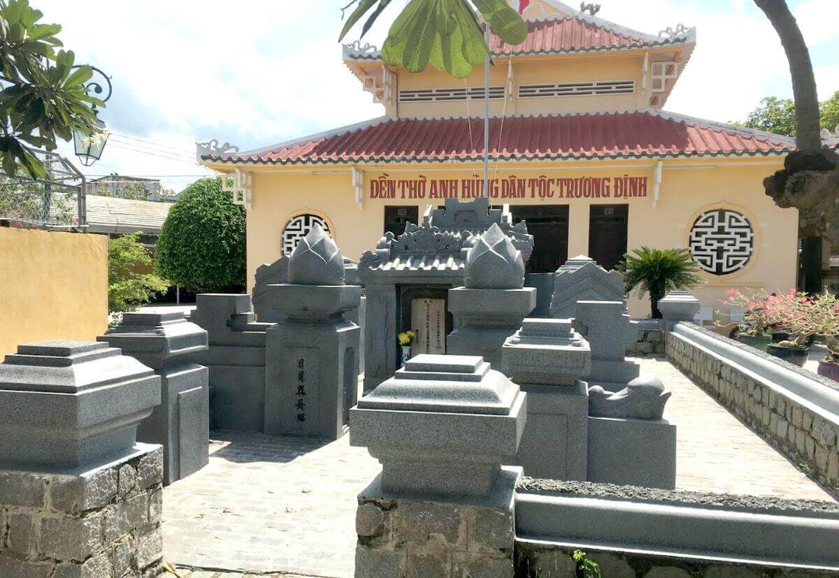 チュオンディン(チュオンコンディン)は、1820年にクアンガイ省ビンソン区、現在のソンティン区のトゥクンコミューン出身でした。チュオン・ディン氏は、ザーディン省の水道警備官チュオン・カム氏の息子である。 1844年、チュオンディンは父を追って南部に渡り、タンホア郡タンフック村の裕福な家庭の娘レ・ティトゥオン夫人と結婚し、父が亡くなった後は妻の故郷タンホアに留まりました。 1854 年、グエン トリ フオンが実施したフエ裁判所の開拓政策に応じて、彼は全財産を使ってクアンナム - クアンガイ地域の貧しい人々を募り、ゴコン地区のギアトゥアンを埋め立ててプランテーションを設立しました。そして農園の副支配人に任命されました。干拓期間中、チュオン・ディンさんは皇太后(トゥドゥク王の母)トゥドゥ夫人のいとこであるトラン・ティ・サン夫人と出会い、結婚した。 1861年4月にフランス植民地主義者がディントゥオン城塞を占領し、1861年11月にビエンホア城塞を占領し、1862年3月にフランス軍がヴィンロン城塞に侵攻した。裁判所は1862年6月5日、ビエンホア、ギアディン、ディントゥオンの東部3県をフランスに分割する平和条約「ニャムトゥアト」に署名した。次に裁判所はチュオンディンに対し軍の解雇を命じ、アンハの司令官に任命し、タンホアの軍を解雇し、急いでアンザンでの新たな役職に就くことを強制した。しかし民の心と反乱軍の心は拒否し、民意と国王の命令の間で迷い、どこに転ぶか分からない中、タンロン地区(チョロン)の反乱軍から次のような意思を表明する手紙を受け取った。彼を第 3 司令部の司令官に任命し、敵を倒すために目覚めよ。愛国者と国民の信頼に感謝し、彼は裁判所の命令を拒否し、国民から与えられた「ビン・タイ大元帥」の称号を受け取り、フランス侵略者との戦いを続けた。 1864 年 8 月 20 日、フランスの敵が突然ダーク リーブスで反乱軍を包囲して攻撃し、彼と反乱軍を追跡しました。彼はゴコンから全軍を撤退させ、ビエンホア(現ホーチミン市)との国境に接するニパヤシ林で覆われた沖積地の真ん中にあるリーニョンを新たな防衛線として選んだ。 1863 年 9 月末、敵はこの基地を攻撃するために包囲を開始しました。リーニョンでの敵の襲撃と追跡を逃れたチュオン・ディンは、暗葉に戻り、一方では軍隊を再建し、愛国的な学者たちに立ち上がり、敵との戦いに貢献するよう呼び掛けた。 1864年8月。彼の召喚に応じて、ミトー、タンアン、ゴーコン、カンジュオック、チョロン、そしてビエンホアの国境地域で抵抗の波が起こり、フランスの敵は混乱し、彼を破壊するためにさらに厳しい捜索を行った。 1864年8月19日の夜、チュオン・ディンの居場所を知った裏切り者のフイン・コン・タンは軍隊を派遣して家を包囲し、侵入した。チュオン・ディン氏と反乱軍は激しく戦い、多くの敵兵を殺害したが重傷を負ったが、生き残ることはできないと悟り、敵の手に渡らないと決意し、身を守るために剣を抜いて自殺した。英雄的な精神を持ち、その年に44歳になった。 1864 年 8 月 20 日にチュオン ディンが亡くなった後、チャン ティ サン夫人はチュオン ディンの 2 番目の妻となり、人々は彼を連れ戻し、現在のティエンザン省ゴコン町の場所で厳粛に埋葬しました。 1964年、彼の墓と寺院は広く改修され、現在まで当時の姿を保っています。 ゴーコンの町にある墓と寺院に加え、人々はゴーコンドン地区のギアトゥアンコミューンにも寺院を設立した。そこはかつてチュオンディンと反政府勢力が戦う拠点としていた「ダークリーブス」と呼ばれる場所だった。フランス人は彼を崇拝します。 ゴーコン町にあるチュオンディンの墓と寺院の遺物は、1987 年 8 月 30 日に文化情報省によって国家遺物として認められました。ゴーコンドン地区のギアトゥアンコミューンにあるチュオンディン寺院は、2004 年に国家遺物として認められました。 出典: ティエンザン省文化スポーツ観光局