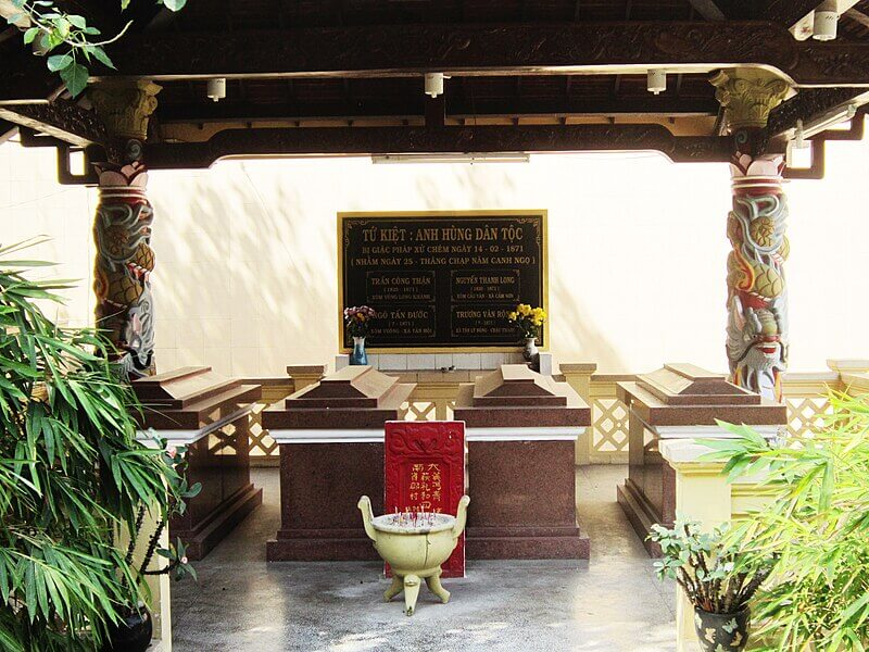 トゥ キエットの墓は、1868 年から 1870 年にかけてフランスと戦った 4 人の英雄の墓と寺院の名前です。トラン・コン・タン(自称フオン)。チュオン・ヴァン・ロンとゴ・タン・ドゥオク(ドイツ)は、19世紀最後の数十年間、カイライ - カイベの人々と反乱軍を率いてフランスの侵略に立ち向かいました。 霊廟は、ティエンザンのカイライ地区、カイライタウン、4月30日通りにあります。四人の男が犠牲を払った後、人々はカイライの町にトゥキエットの墓と呼ばれる人々への敬意を示す墓と寺院を建てました。民間伝承によれば、この 4 人は全員、勇気、戦略、優れた武術で有名でした。熱烈な愛国心を持っていた4人は、フランス軍がディントゥオン省に侵攻したとき(1861年)、ティエン・ホー・ズオン率いる反乱軍に加わった。他の反政府勢力とともに、彼ら 4 人はバ ジョン、チョー ガオ、ミトーの地域での多くの激しい戦闘に参加しました...戦闘中に、4 人は多くの輝かしい勝利を収めました。 1868年、ティエン・ホー・ズオンの蜂起が失敗すると、4人は兵士を集めるためにカイライに戻り、フランス軍と戦い続ける地域としてカイベー - カイライ地域を選択した。トゥ・キエット軍の最も輝かしい勝利は、ミトー城塞への攻撃とカイライ守備隊の破壊であった。 敵に多大な損害を与えた2年間の作戦の後、トゥー・キエットの蜂起はフランス遠征軍の包囲と完全な鎮圧の下で失敗にならざるを得なかった。 4人は何日もかけて栄光と富で彼らを誘惑したが失敗した。 1871 年 2 月 14 日(Canh Ngo 年 12 月 25 日)、敵は 4 人を斬首するために処刑場に連れて行き、さらに残忍にもカイライ市場で 4 人を斬首しました。それから市場の隣の川の埠頭でパンチします。 カイライの人々は、4 人の生涯と英雄的で不屈の戦いの模範に感心し、木の柵と荘厳な香の煙に囲まれた土の墓を建てました。近くのミーチャン村では、ダン・ヴァン・グーの生徒であるニュー氏が、4人の男性が斬首された場所のすぐ近くにある自宅の前に神社を建てた。寺院の屋根は陰陽瓦で葺かれており、植民地政府の目をくらますために、人々はそれをオン・パゴダと呼び(正面には忠誠を象徴するクアン・コンの祭壇があったため)、後ろには四神という4つの言葉が刻まれた石板がありました。 . 鮮やかな赤と金に彩られた魂は四宝具を崇める。 辰年の嵐(1904 年)により、寺院は倒壊しました。ニュー氏は寺院をタンソン村(以前はタンホアコミューン、現在はカイライ町)に移転しました。現在、この寺院はトゥ キエットの墓から 100 メートル以上離れたカイライ市第 1 区に位置しています。 1967 年、カイライの人々は寺院とフォー オンの墓を大規模に修復し、内側に神社、外側にゲストハウスを設けました。 1999 年に、4 人の霊廟はティエンザン省によって大規模に修復され、今日と同様に非常に広く古代の姿をしています。 毎年旧暦 12 月 25 日には、カイライ族の人々が大勢ここに集まり、墓を掃除し、国のために犠牲となり敵を殺した四人を敬意を表して偲び、非常に厳粛な命日を執り行います。後世に残る輝かしい例。 1999 年 9 月 13 日、トゥ キエットの墓の遺物は文化情報省によって国家遺物として認められました。 出典: ティエンザン省文化スポーツ観光局