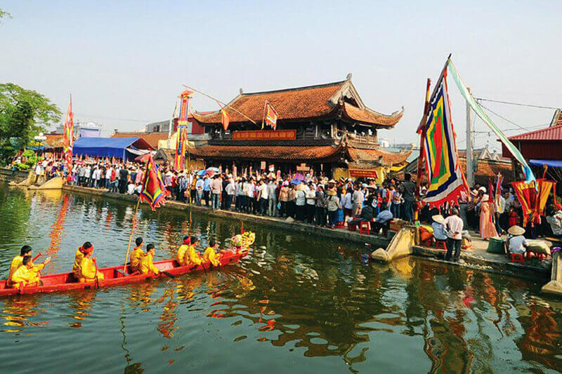 ドンバン寺院は、タイビン省クインフー地区アンレコミューンのドンバン村、フープオン地区フォンロー地区のダオドン遺跡のディエム川沿いにあります。この寺院の自己名はバク ハイ リン トゥです。バト ハイ ドン ディン神父を崇拝する場所です。バト ハイ ドン ディン神父は、初期に国を守るためにトゥクをなだめ、村落を設立し国と社会を構築するために人々を募集することに多大な貢献をした人物です。 。 ドンバン寺院は第 18 代フン王の治世に遡る神聖な寺院として人々に知られており、「タム・キ・リン・ウン - ヴィン・コン大ヴオン、最高の精神」という称号が与えられています。伝説によると、フン・ヴォン18世の治世中、我が国は外国の侵略者に侵略され、国が侵略者を倒すのを助けるために裁判所はリン・ソン・トゥ・チーを召喚するための祭壇を設置しなければならなかったという。その時、ダオドン村の水神が現れて王の敵を倒すのを助け、西の8つの河口の守備に最初の貢献を果たしました。彼は「チャン・タイ・アン・タム・キー・リン・ウン - ヴィン・コンの偉大な王、最高の精神的神」として叙階されました。以来、この地は霊的な場所として世界中の人々から崇められ、寺院が建てられてきました。 13 世紀には、ダオ ドン村はトラン王朝の重要な軍事防衛線の 1 つでもあり、兵士が駐留して海戦が行われました。出陣前、フン・ダオ・ダイ・ヴォンとその将軍たちは皆、寺院に線香をあげて祈りに来ました。彼の死後、彼はここで人々に崇拝されました。それ以来、ドンバン寺院は、モンゴル元軍の 3 つの大敗北の際のフン ダオ ヴォンとチャン王朝の将軍たちを追悼し、8 つの古代ダオドン遺跡が設立された場所でもあります。 ドンバン寺は立派な歴史的価値があるだけでなく、内部面積6,000平方メートル、13の建物と66の区画が密接に配置された青銅、石、木芸術の博物館などの貴重な建築芸術遺物でもあります。互いに連結されて、閉鎖的で堂々とした「第一、第二、第二」スタイルの構造を持つ寺院複合体を形成しています。建築作品は、洗練された彫刻、何百もの水平パネル、対句、偉大な人物、四神獣、四貴重な動物、香炉セット、祭壇、龍をテーマにした漆塗りや金メッキの巻物と調和しています。 、カイディン王朝とバオダイ王朝の美しい木製彫刻が今もそのままの形で保存されています。 伝説、歴史的、芸術的価値により、ドンバン寺はインスピレーションと四季の香と煙の寺院として知られています。特に、ドンバン寺は 1986 年に文化体育観光部から国家歴史文化遺物として認定されました。 毎年の慣例に従い、旧暦8月20日から26日までの約1週間にわたり東邦寺祭りが開催され、国内外から多くの弟子、民衆、観光客が集まります。 ドンバン寺院祭りは、伝統的な文化美と崇高な人間的価値観を保存し、感謝の気持ち、「水を飲み、その源を忘れない」という伝統、人々の賞賛と人々への敬意を表現する機会です。そして国民コン・ティエット・フン・ダオ・ダイ・ヴォンの命日を記念する。 出典: タイビン省文化スポーツ観光局