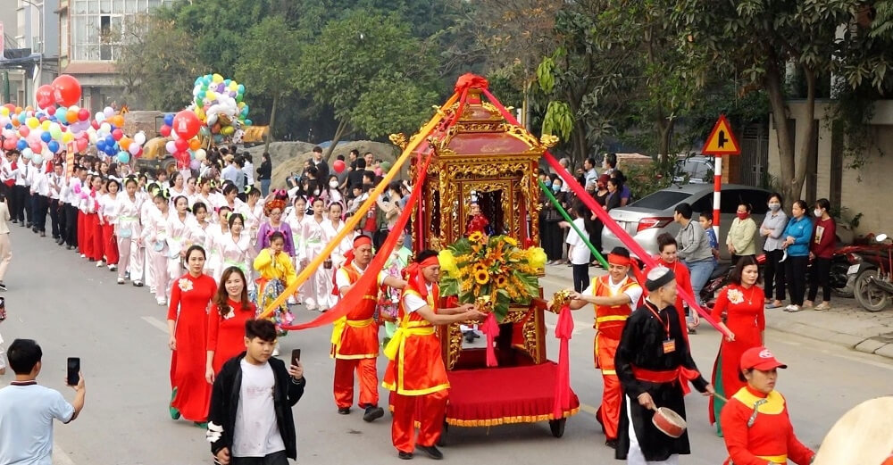 キムダン寺院は現在、フンイエン省フンイエン町ラムソン区キムダン村の中心部に位置しています。かつてこの場所は、アンタオ地区、コーアイチャウ地区、アッパーソンナムタウンのダンマン遺跡でした。伝説によると、この寺院はディン ディエンが「タン ドラゴンとホワイト タイガーがやってくる」という姿勢で本拠地として選んだ土地に建てられたと言われています。 『ダイ・ナム・ニャット・トン・チー』という本には、ディン・ディエン将軍はギア・フオン、ギア・ビエン、ニンビン出身で、ディン・コン・トゥル(ディン・ボーリンの父)の養子であると記録されている。子供の頃から、彼はディン・ボー・リンの「葦旗練習」の友人であり、成長すると、グエン・バク、ルー・コー、チン・トゥー、ディン・ボー・リンと同胞団を結成した。国が12人の軍閥によって混乱していたとき、数人の友人が軍閥トラン・ラムに従ってボーハイ地域(現在のティエンハイ~タイビン)を占領しました。ディン・ボーリンはヴァン・タン・ヴオンになったとき、ディン・ディエンに他の軍閥を征服するための10軍を指揮するよう命じた。ダンマン遺跡に到着し、美しい地形を目にした彼は、すぐに司令部を建設し、ダンマン遺跡からファン、ファム、グエンという3人を将軍に選び、ファン家の少女モイヌオンを将軍に選びました。妻。 。 12人の軍閥の反乱を鎮圧した後、ディン・ボーリンは王位に就き、自らをディン・ティエン・ホアンと名乗り、国をダイ・コ・ベトと名付け、ホアルー・ニンビンに首都を設立した。 Ky Mao の年 (979 年)、Dinh Tien Hoang とその長男 Dinh Lien は裏切り者の Dinh Dien によって殺害され、彼の官僚たちは Dinh Toan (当時まだ 6 歳) を王位に就かせ、ズオン・ヴァンを讃えました。ロシアは女王母として。宋軍が北の国境に侵攻し、国が外国からの侵略の脅威にさらされたとき、兵士たちは当時若すぎたディン・トアンに代わってタップダオの将軍レ・ホアンを王位に就かせると宣言した。それを受け入れず、ディン・ディエン外務大臣とチャウアイを護衛していたディン・コック・コン・グエン・バク、そしてファム・ハップは挙兵し、ホアルーを攻撃するためにタインホアから軍隊を送ったが失敗し、ディン・ディエンは軍隊をダンマンキャンプまで撤退させた。キーマオ(979)年11月17日(旧暦)、ディン・ディエン夫妻が亡くなり、ダンマン陣営の人々は兵舎の基礎に寺院を建て、ディン・ディエンの3将軍も祀られたここ。 時間の経過とともに、寺院は何度も修復されました。現在、キムダン寺院には、後レ王朝とグエン王朝の多くの建築的特徴が残っています。 1997 年、この寺院は文化情報省によって歴史的遺物として分類されました。寺院は釘の形をした建築で、5 つの前拝所スペースと 3 つの後宮スペースを備えています。祭壇建物は2階建て8葺の重層造で、仏塔の建物は2階建て8葺の屋根が重なります。ブレードにはドラゴンの頭がエンボス加工されています。屋根のラインには、太陽の両側にある2頭の龍のイメージがあり、2本のハサミには「二匹の魚」(2匹の鯉)が飾られています。屋根は龍の鱗のタイルで覆われ、首のフリルには漢字で「Dinh Dai Linh Tu」の4文字が装飾されています。ヒッチトラスの構造はシンプルで、頑丈なアイアンウッドの柱システムによって支えられています。 正面の祭壇には瓦屋根の奥の部屋が 3 つつながっています。トラス構造は夫と蓮のスタイルで、梁には花と葉の様式化されたパターンが浮き彫りにされています。中央のスペースには、瞑想の姿勢で作られたディン ディエン将軍とその妻ファン ティ モイ ヌオンの彫像が安置されています。また、遺物には、彼らの功績を称賛する多数の横長の絵画や対句も保存されています。 毎年、陰暦 11 月 15 日から 17 日まで、ディン ディエン将軍とその夫人の死を追悼するキムダン寺祭りが開催されます。祭りの期間中は、駕籠行列に加えて、闘鶏、獅子舞、口唱、軍太鼓歌唱、水上人形劇などの伝統的な民俗行事も行われ、近隣住民との連帯関係の構築に貢献します。ベトナム人に愛国的な伝統について教育し、水を飲むときに水源を思い出してください。 出典:フンイェン新聞