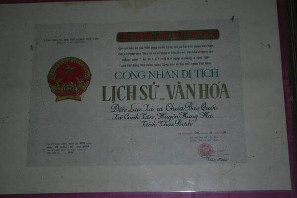 ルーサー寺院は、李朝 (12 ~ 13 世紀) の 2 人の有名な歴史上の人物、ルー カーン ダムとルー バを祀る場所です。バオコックパゴダは、当時のリー四王朝(タイトン、タイントン、ニャントン、タントン)の繁栄に多大な貢献をしたマンダリンに敬意を表してリー王が付けた名前です。 ルーサー寺院とバオコック塔の遺物は互いに密接に関連しており、共通の歴史的出来事を共有しているため、遺物群を形成しています。寺院と仏塔は、ルーサー村、カンタン村、フンハ地区、タイビン省の始まりに隣接して位置しています。 ルー・カーン・ダムとルー・バは母親が異なる二人の兄弟で、父親はクウ・チャン地区(現在のティウ・チュンコミューン、ティウ・ホア、タインホア)の故郷であるルー・グー氏です。 Luu Ngu 氏は、レ王朝 (レ ホアン王とレ ロン ディン王) 以前の役人で、この河の合流点を統治していました。当時のルー・サーの土地が川の向こう、ラグーンの前にあり、川が「龍が虎を追う」ように曲がりくねっていたことに気づき、そこに宮殿を建て、地元の女性と結婚しました。彼が初めてトラン・ティ・ゴックさんと結婚したとき、彼女は40歳近くだったが、ファムという女性と結婚した。その後、二人の女性は同じ日に妊娠、出産しました。唯一の違いは、一人が寅の刻に生まれ、もう一人が午の刻に生まれ、彼がルー・カーン・ダムで、若い方がルー・カーン・デューだったことです。 (ルー・バ)。ルー・グーさんは田舎から親戚を連れてルーサーの土地に住まわせました。 リー・コン・ウアンが王位に就き、リー王朝が開かれると、ルー・グーの子供たちはすぐに暖かくなり、宮廷に入りました。兄弟は両方とも同じ王朝のマンダリンでした。リー王朝が設立されるとすぐに、敵が南から侵入してきました。ルー・カーン・ダムは、リー・タイ・トー王とその将軍から軍隊を率いて敵と戦うよう命じられ、チャンパ王ボー・ホップを捕らえ、彼が戻ってきた。南が静まるとすぐに、宋の敵が北に侵攻すると脅迫しました。彼は王にこう言った、「陛下が心配しないことを願っています。陛下は自ら王国を越えて四海を指揮しに行きます、私の家臣たちと忠実な兄弟たちと将軍たちが、リー時代の間、敵との戦いに取り組んでくれるでしょう。」宋の侵略者は三度この国を侵略しましたが、私たちはすべて軍隊と人民に敗れました。タイ・トーはルー・ダムを南部を破り「良い計画」(良い計画)を持った人物であると考え、首都を離れることを提案し、彼を開国のためのタイ副官の称号に任命し、王冠の指導と指導を任命した。ファット・マー王子。 タイ・トーが亡くなり、タイ・トンが王位に就き、ルー・カーン・ダムは国王に村民の役務と税金を免除するよう要請した。 タイ・トンが亡くなると、タン・トンは王位に就き、ルー・カーン・ダムをビン・チュオンに任命しました。人生の終わりに、ルー・カーン・ダムはルー・サーに戻り、村の塔を修復し、そこで修行しました。村にいる間、僧侶のギアック・ハイ、ズオン・コン・ロー、グエン・ミン・コンとともに、タイビンで人々のために「ルオック川の開削」、「シン川の建設」、「ホア川の掘削」を企画した。 タントン王が亡くなると、葬儀に参列するために戻ってきましたが、彼は建国の民であったため、王は修行していた塔の名前を「バオ・コック・トゥー」と名付け、王の称号を与えました。タイトルは「チン・チュウ・カム」」で、ルー・ダム王の霊廟の隣に高さ9フィート、9階建ての塔を建てた。ルーサーの村人たちは寺院を建ててくれた彼に感謝し、彼を村のタイン・ホアンとして讃えました。リー・ニャントンが王位に就いたとき、彼は彼に「精神的理解を示す」という4つの美しい言葉を授け、その後の王朝はすべて彼に神の称号を与えました。彼の寺院 (ルーサー寺院) とバオコック塔は 1990 年に国家歴史文化遺物に指定されました。 出典: タイビン文化スポーツ観光局