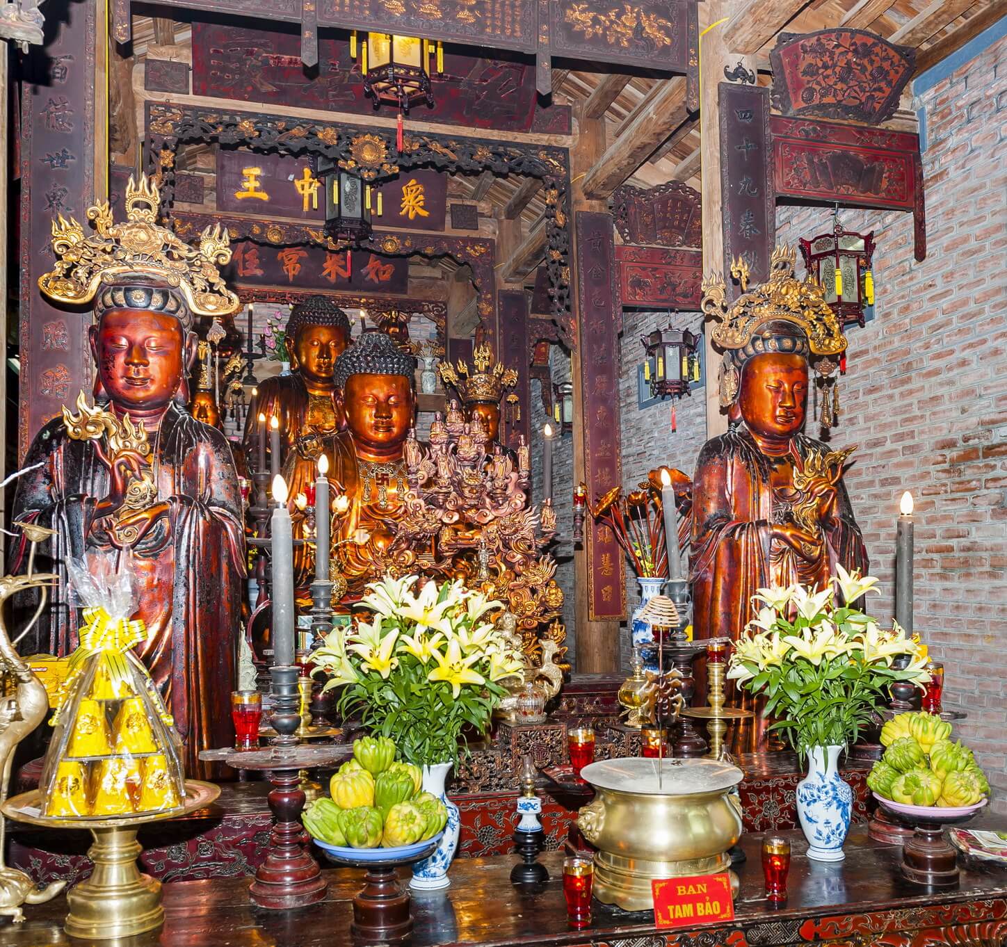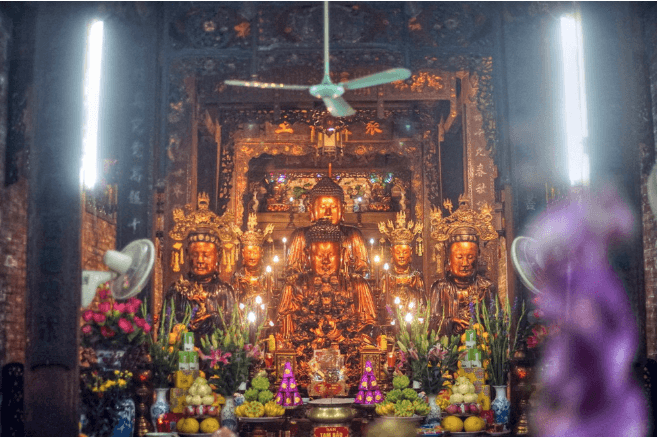 バ ダ パゴダはもともと、ベトナム北部の 2 つの主要な禅宗の 1 つであるラムテ禅宗の祖先の地でした。 Ba Da Pagoda (Linh Quang Tu) は、ハノイ市ホアンキエム区ハンチョン区ニャートー通り 3 番地に位置し、ホアンキエム湖エリアからわずか約 100 m です。この場所はかつて、タンロン首都のバオティエン区、ティエントゥック区、トースオン区、フンティエン区、ティエンティ村に属していました。 バ ダ パゴダは、バ ダン パゴダ、バ ナン パゴダ、バ ゴー パゴダと並ぶ首都の 4 つの最も古いバ パゴダの 1 つです。 バ ダ パゴダはもともと、ベトナム北部の 2 つの主要な仏教禅宗派の 1 つであるラムテ禅宗の祖先の場所でした。 この塔は、ハノイの人々の国を救うための 2 つの抵抗戦争の多くの証拠とも関連付けられています。フランスに対する抵抗戦争中、バ ダ パゴダはベトミン幹部の旅行拠点でした。 ベトナム統一仏教協会の設立(1958 年 5 月)後、バ ダ パゴダはハノイ仏教連絡委員会の本部となりました。ベトナム仏教サンガの設立(1981 年 11 月)後、この塔はハノイ仏教協会の本部となりました。 1992 年以来、バー ダ パゴダで最初のハノイ仏教中級クラス (1989 ~ 1992 年) が開講されました。 レ・チンの治世(1767年~1782年)の終わりに、人々がタンロン城塞を建設するための土を採取するためにパゴダの庭の周りを掘ったとき、石像を発見しました。人々はこれが仏陀の像であると信じているので、この仏塔に礼拝するために持ち込んだため、それ以来、この塔は八大塔と呼ばれるようになりました。 午年(1786 年)の 6 月、タイソン軍は戦闘中に誤って火災が発生し、バー ダ パゴダは灰になりました。塔は全焼し、草と苔が生えた空き地だけが残されました。その時、上官は廃墟を修復するためにその荒れ果てた庭の草むしりを民に命じた。村人たちは仏陀に敬意を表し礼拝の場を設けるために、竹絵だけで作られた塔を建てました。 丑年(1793 年)、僧侶コーアン ザイが塔の住職となり、徐々に 3 室の瓦屋根の塔を建設しました。巳年(1821年)、総主教ギアック・ヴオンが王位を継承し、十方から功徳を受けたため、より大きな塔を建て、廊下をいくつか増設し、客室を増やしました。次に、Pho Si の先祖が投稿する予定でした... ここから、Ba Da Pagoda は古代の美しさを復元します。 現在の塔は、5 つの前殿、4 つの上殿、および閉鎖されたキャンパス内に総主教と母教会のエリアを備えた比較的大きな規模となっています。この塔には他の塔のような三つの門はなく、入り口は深さ約9メートルの狭い路地です。お寺は北を向いています。この寺院の最もユニークな建築は、適度な大きさの 4 本の石柱で支えられた低いポーチです。柱には四季折々の情景を描いた、とても繊細で柔らかなモチーフが彫られています。 パゴダの中には赤く塗られ、金箔を施された多くの木像があり、その上にはタム・ザの像があり、その下にはタム・トン阿弥陀の像があります。次に釈迦牟尼仏像があり、その両側に文殊菩薩像と三マンタバドラ菩薩像が安置されています。下の段はクーロン寺院で、彫像はすべて他の塔よりも大きく、ここの彫像は独自の非常に美しく古代の外観を持っています。特に、バイズオン家には他の仏塔のような護法像はありませんが、両側の壁に多くの裏石碑が取り付けられています。この塔には、1873 年から 1881 年に鋳造された 2 つの銅鐘など、多くの貴重な工芸品も保存されています。 1842年の青銅鋳造式。 バ ダ パゴダは、2006 年にハノイ人民委員会によって歴史的および文化的遺跡としてランク付けされました。/ 出典 ハノイ市ホアンキエム地区の電子情報ポータル。
